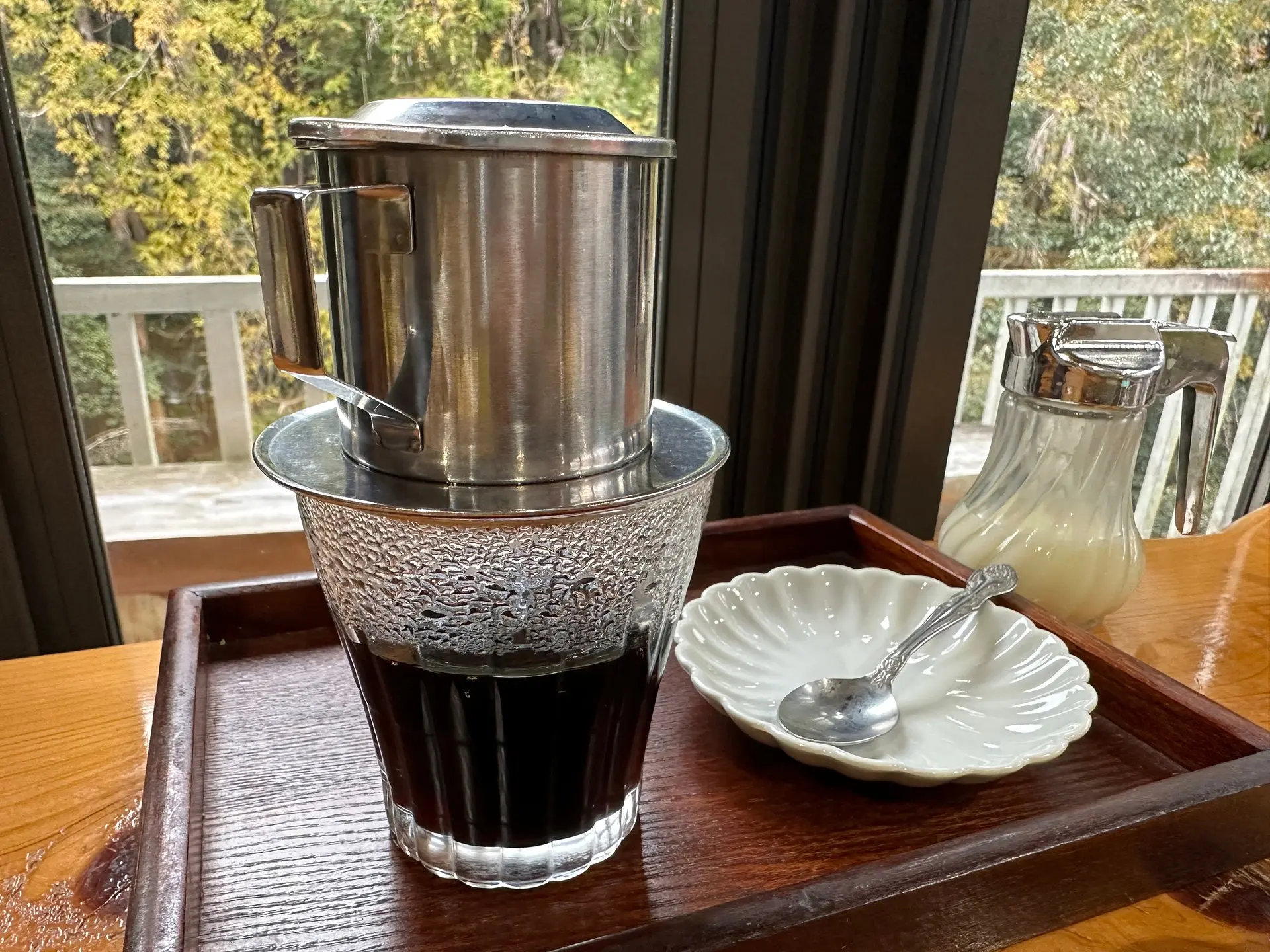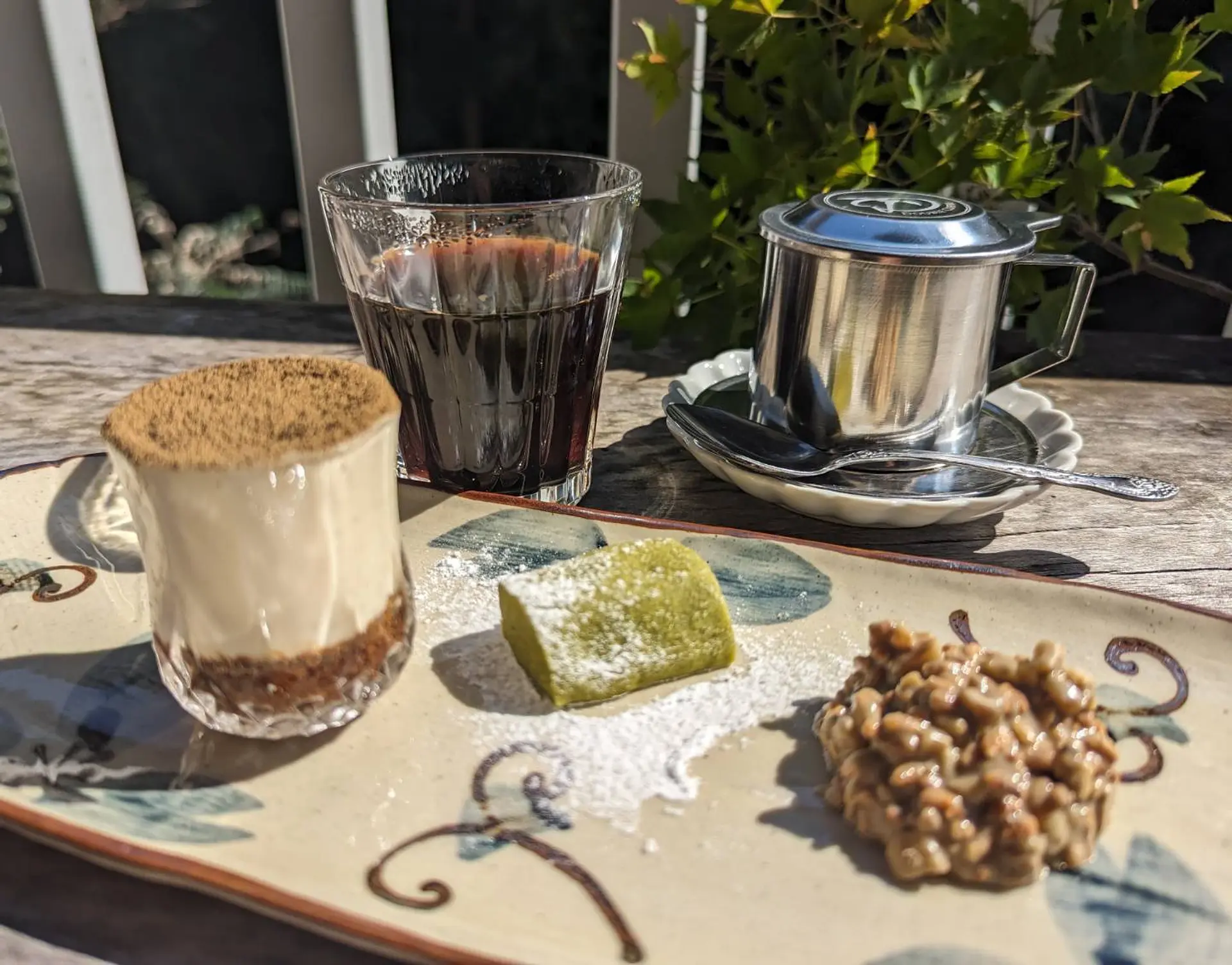 手作りスイーツのセットと、独自の方法で抽出するベトナムコーヒーが提供されます。