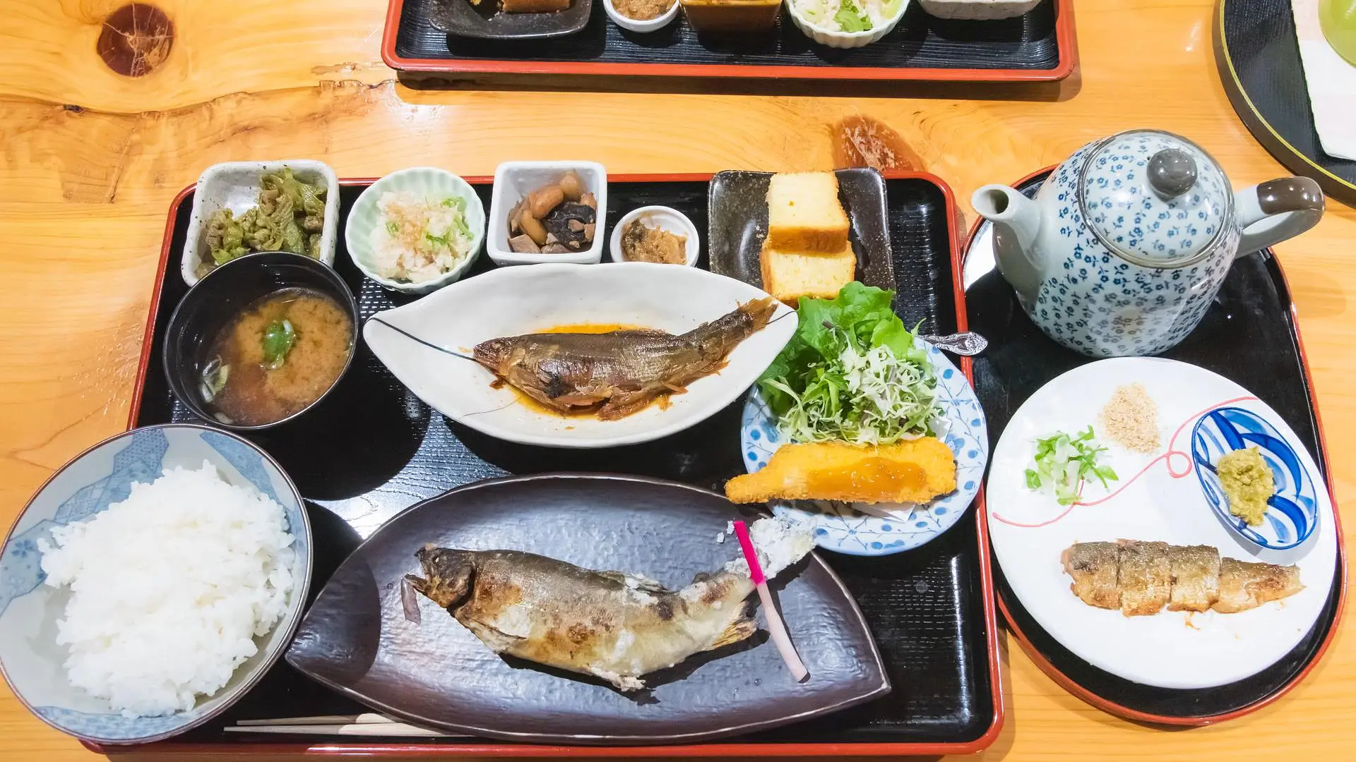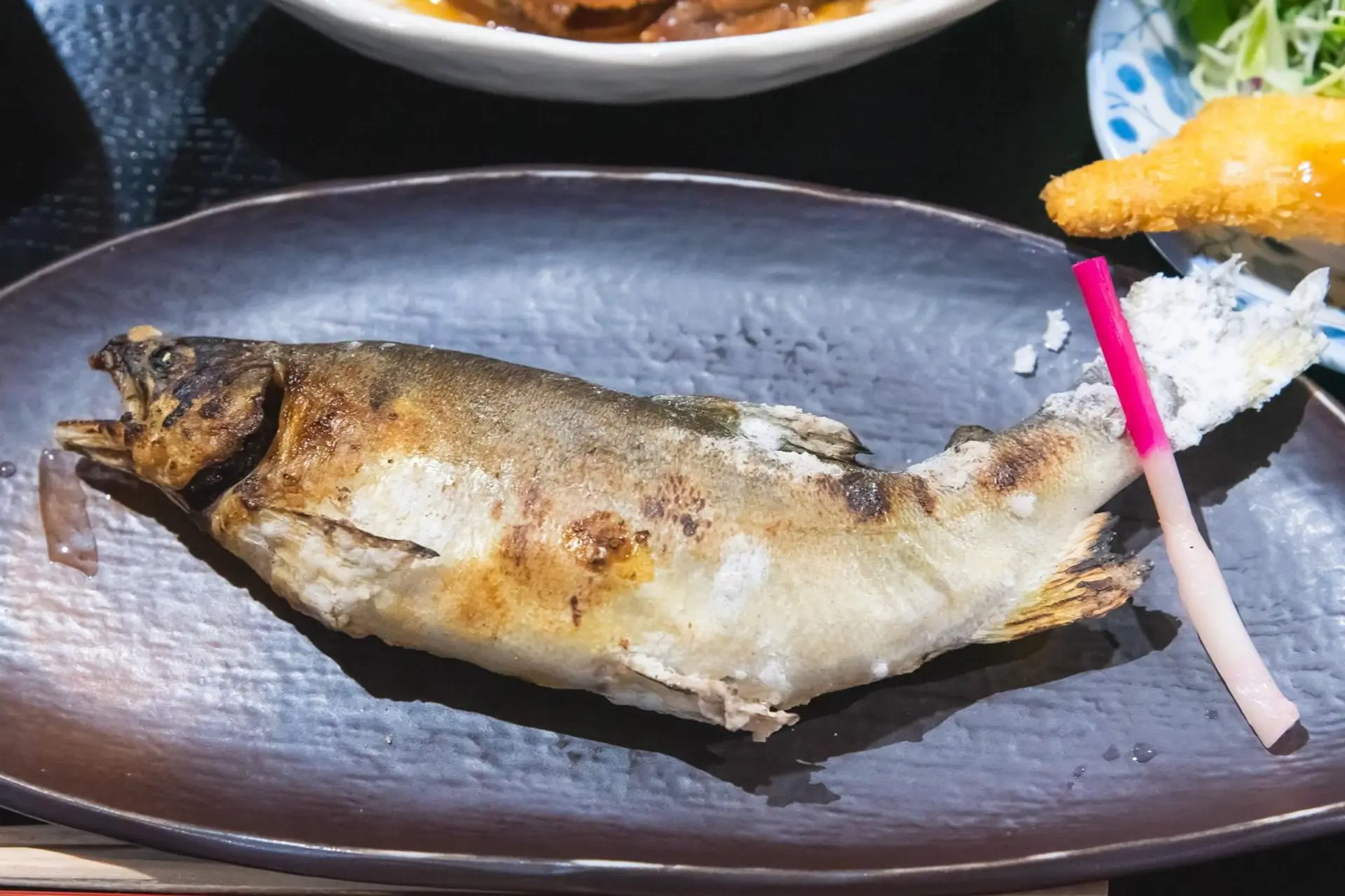 どちらも、塩焼き定食、「いろいろ定食」として塩焼きやフライ、甘露煮が付く定食、さらにいろいろ定食に「鮎のへしこのお茶漬け」が付くセットがあります。