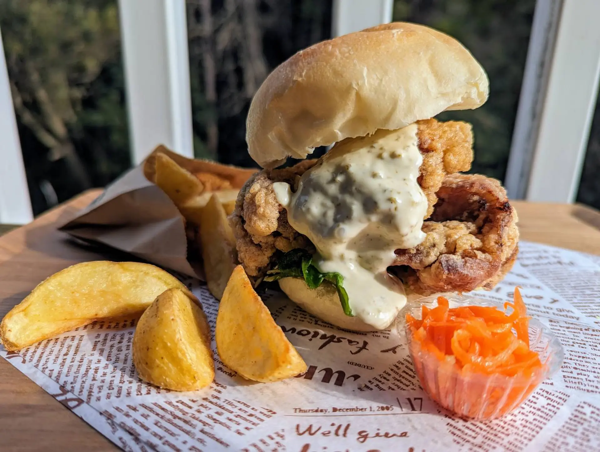 ピリッと辛いのがお好きな方には、自家製柚子胡椒マヨネーズソースの「柚子唐バーガーセット」を、辛いのが苦手な方には自家製タルタルソースの「タル唐バーガーセット」を。