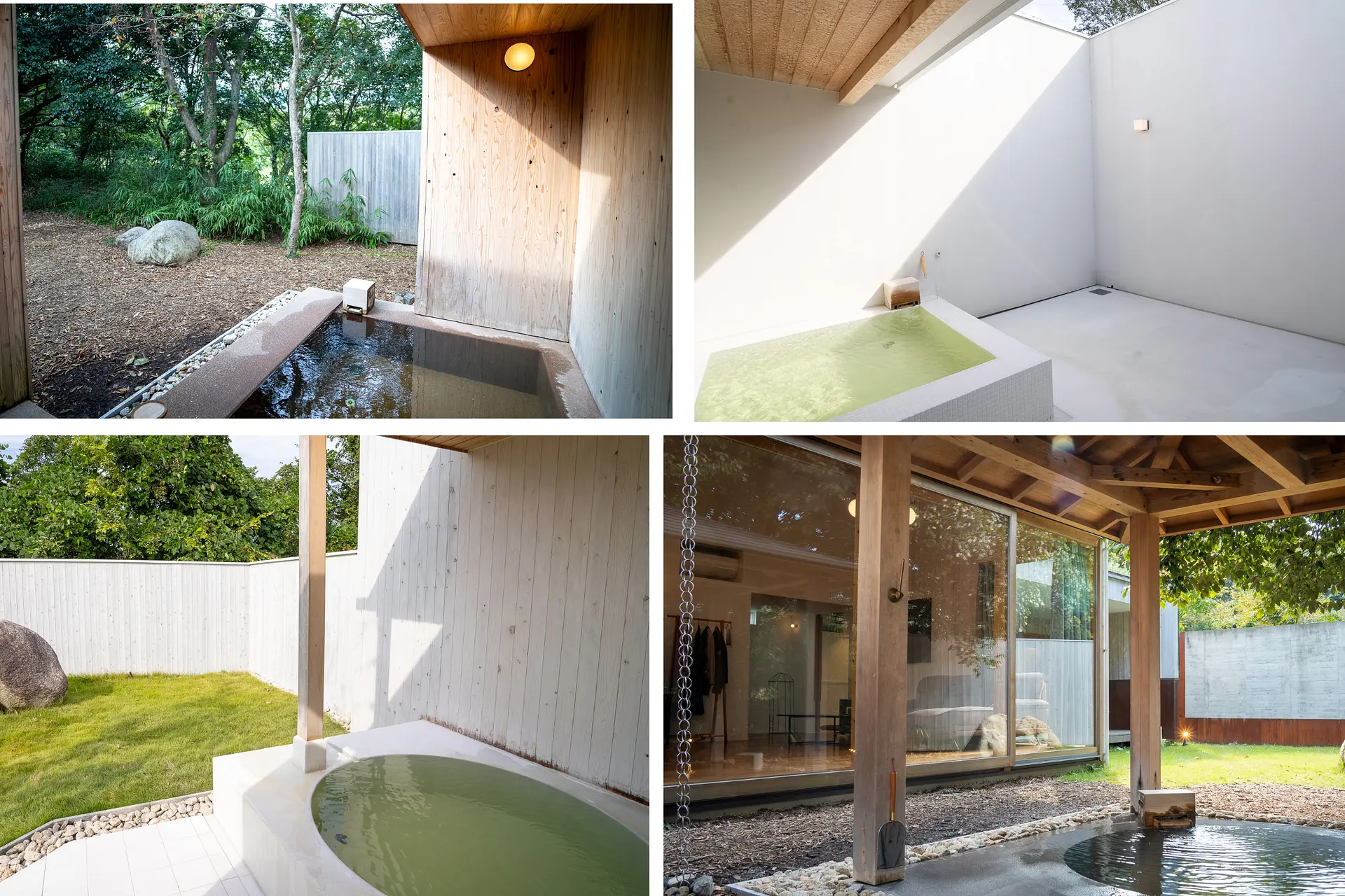 湯の山 素粋居では、すべてのヴィラに露天風呂が備え付けられています。