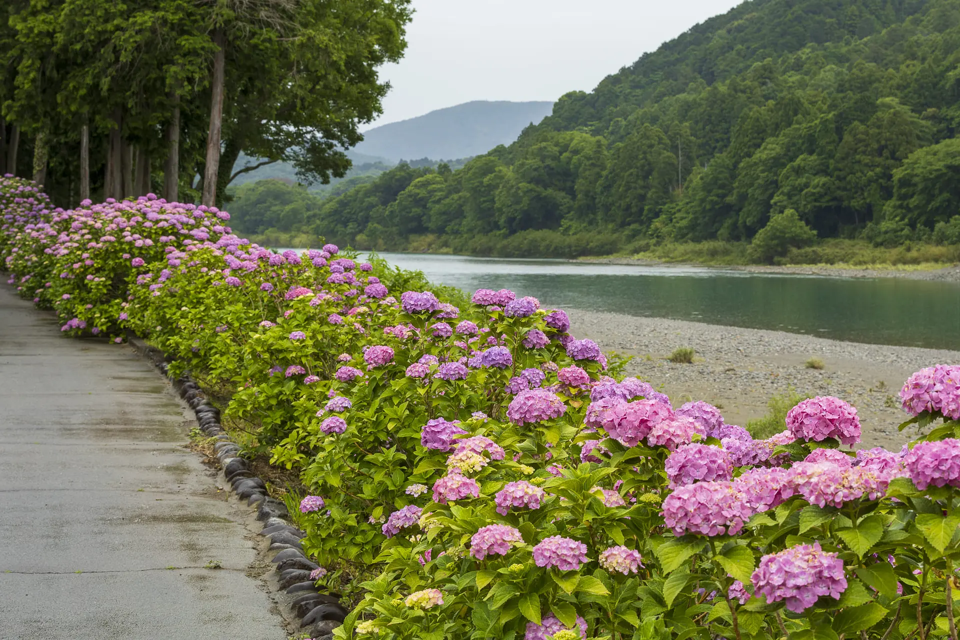 宮リバー度会パークはイベントや公園遊びのほか、春には河津桜とソメイヨシノの桜、梅雨の時期にはアジサイ秋には紅葉が楽しめる地域の人々の憩いの場となっています。