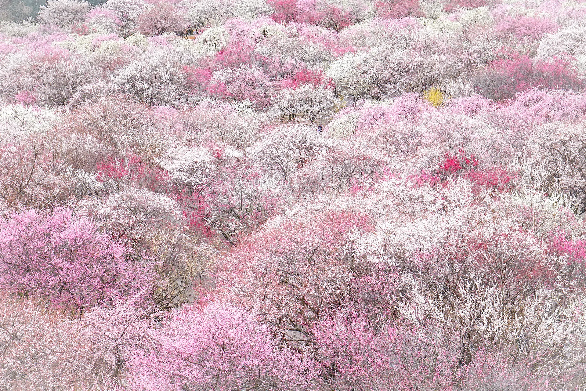 駐車場から進んだところにある見晴台では、美しく濃淡様々な梅の花の パッチワークのような花景色から、そびえ立つ山々の絶景を堪能することができます♪