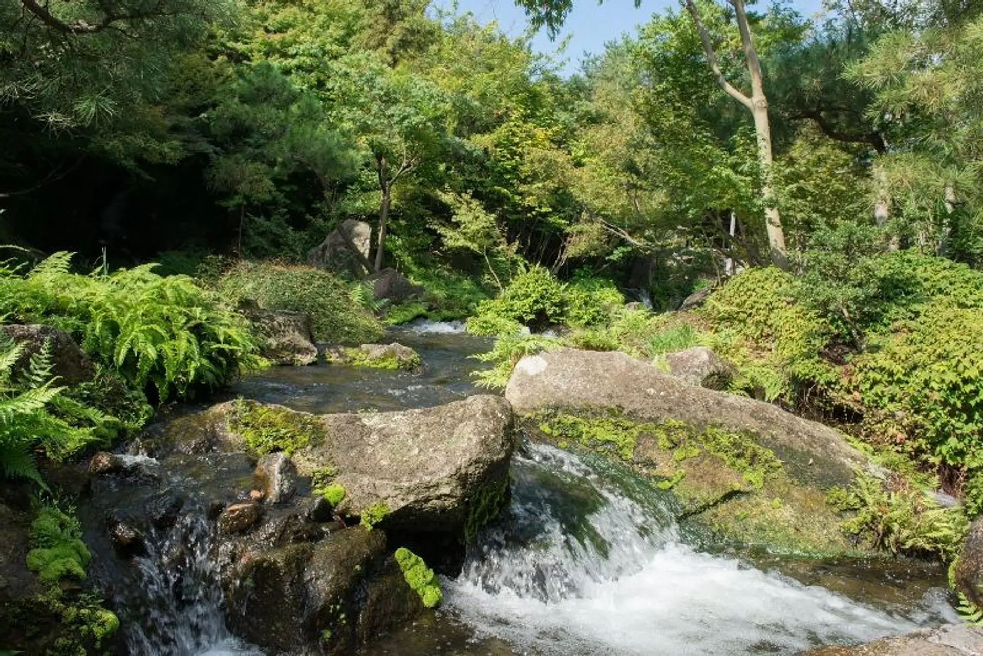 庭園の緑には栽培されたものでなく実際に山中で育った樹木を用い、