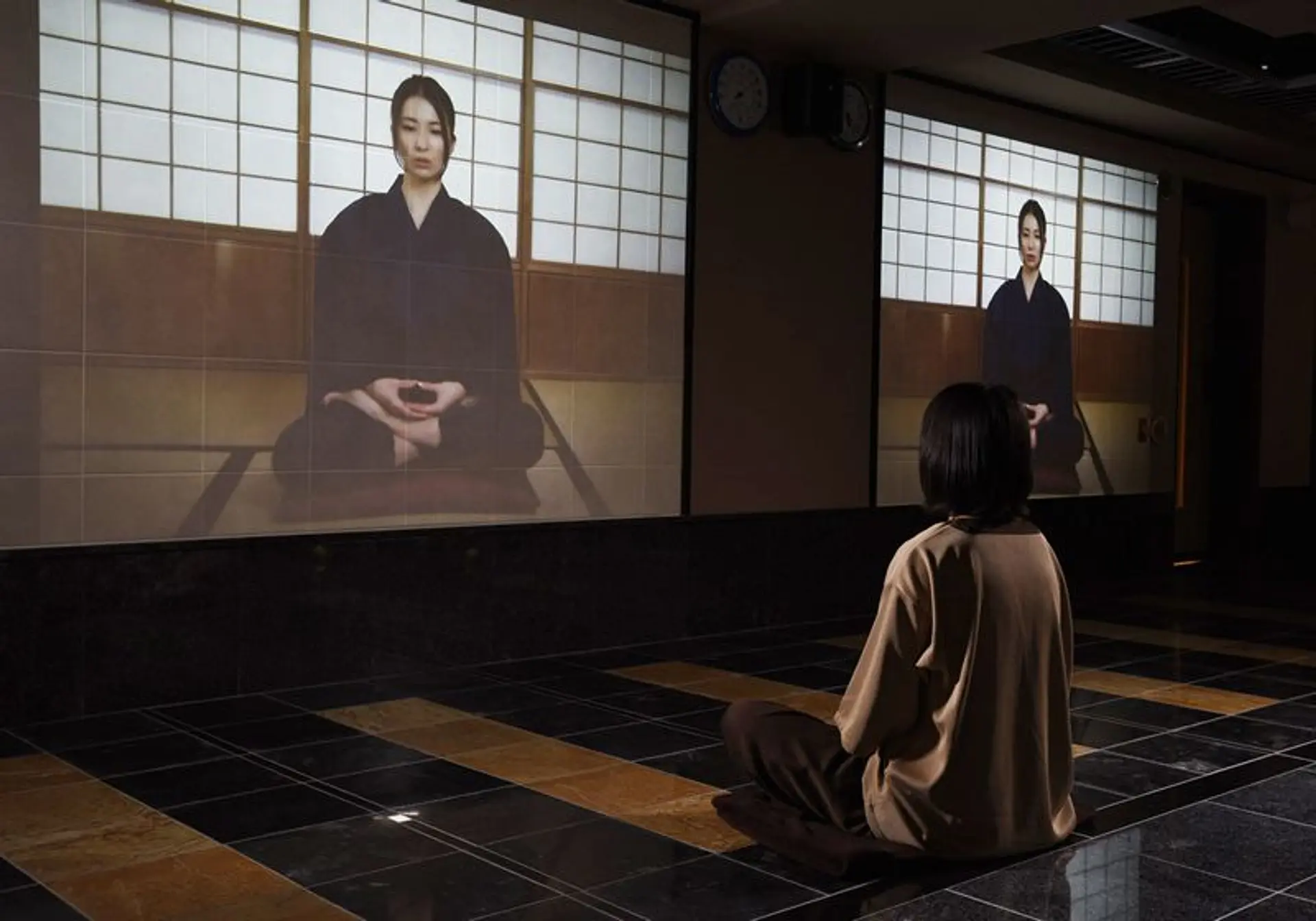 内湯は、名建築で名高い奈良の法隆寺夢殿をなぞって、木を美しい八角形に組んだ湯屋となる。ここに大きな石張りの湯船と檜造りの湯船が並びます。