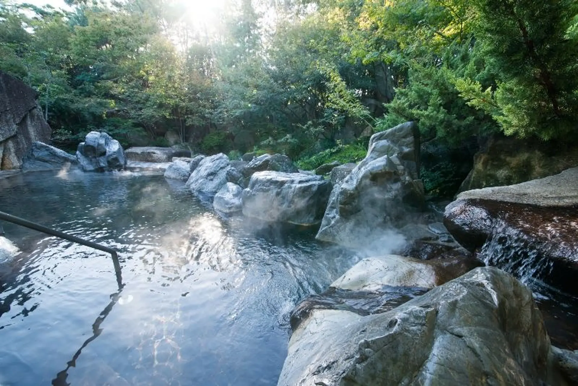大自然の情景を模倣した露天風呂が魅力。広大な敷地33,000㎥には内湯、露天風呂など17種類の個性的なお風呂が楽しめます。庭園内には湯舟が点在し、いつのまにか大自然を満喫していただきます。This is a large spa built on a 33,000 m2 site with a total of 15 open-air and indoor hot spring baths for women and for men