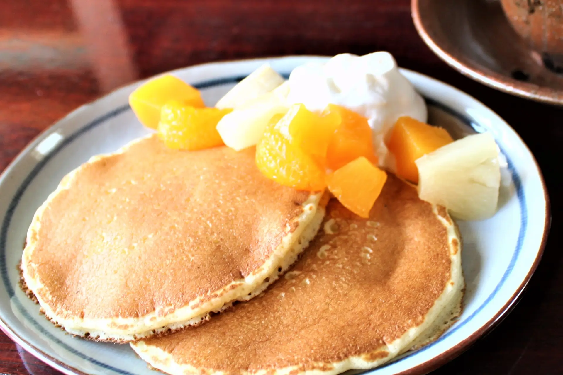 cafe.mukuの看板メニュー昔ながらのもっちりしっとりパンケーキは、なんと12種類もの中から選べます。