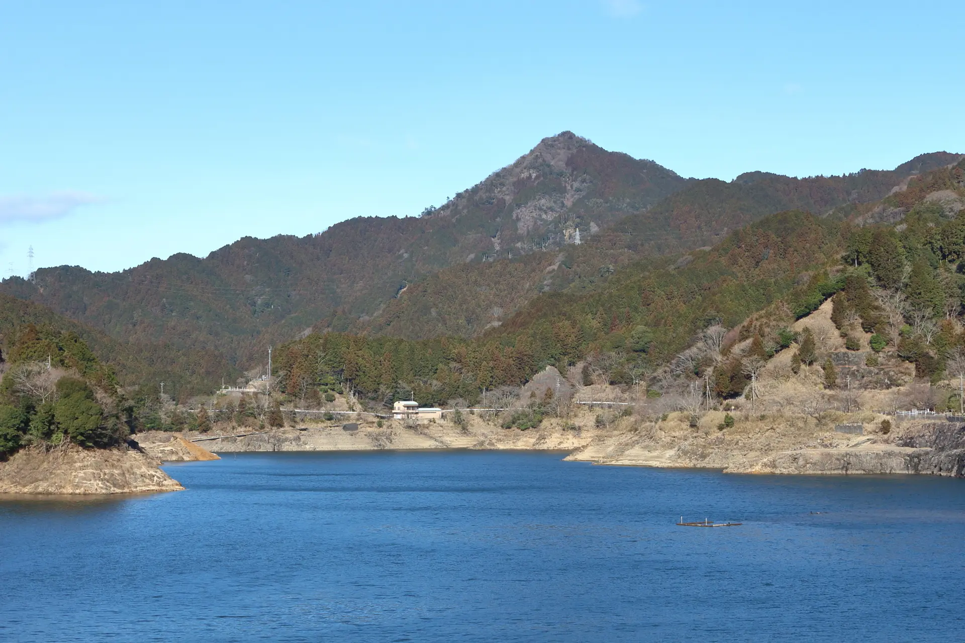 錫杖湖は、津市芸濃町の河内渓谷の上流に位置し、昭和56年に完成した安濃ダムによってせき止められてできたダム湖で、近くにある山「錫杖ヶ岳」にちなんで名付けられました。