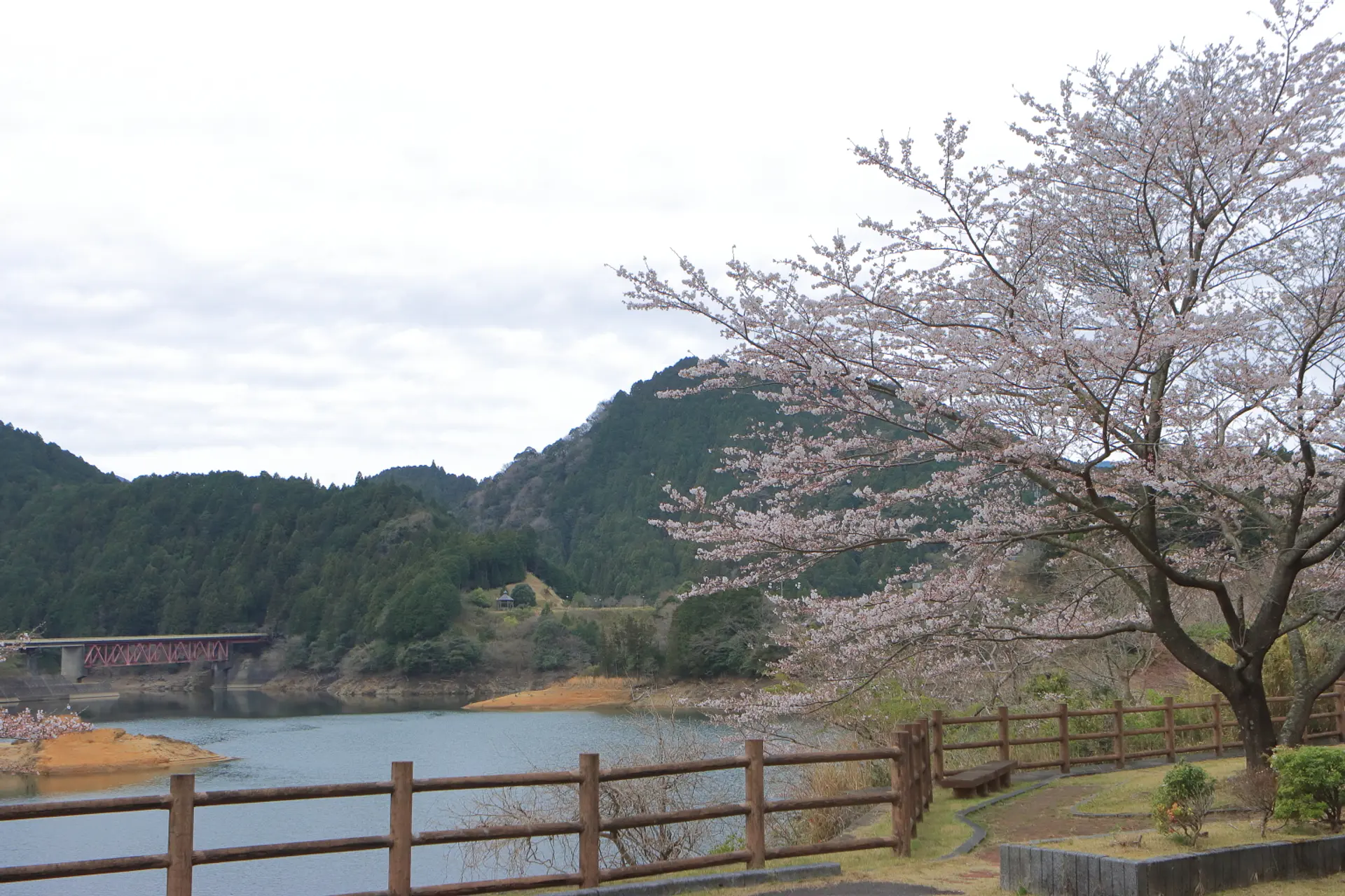 対岸には笹子橋という橋が見え、湖と橋と桜との共演を見ることができるスポットです。
