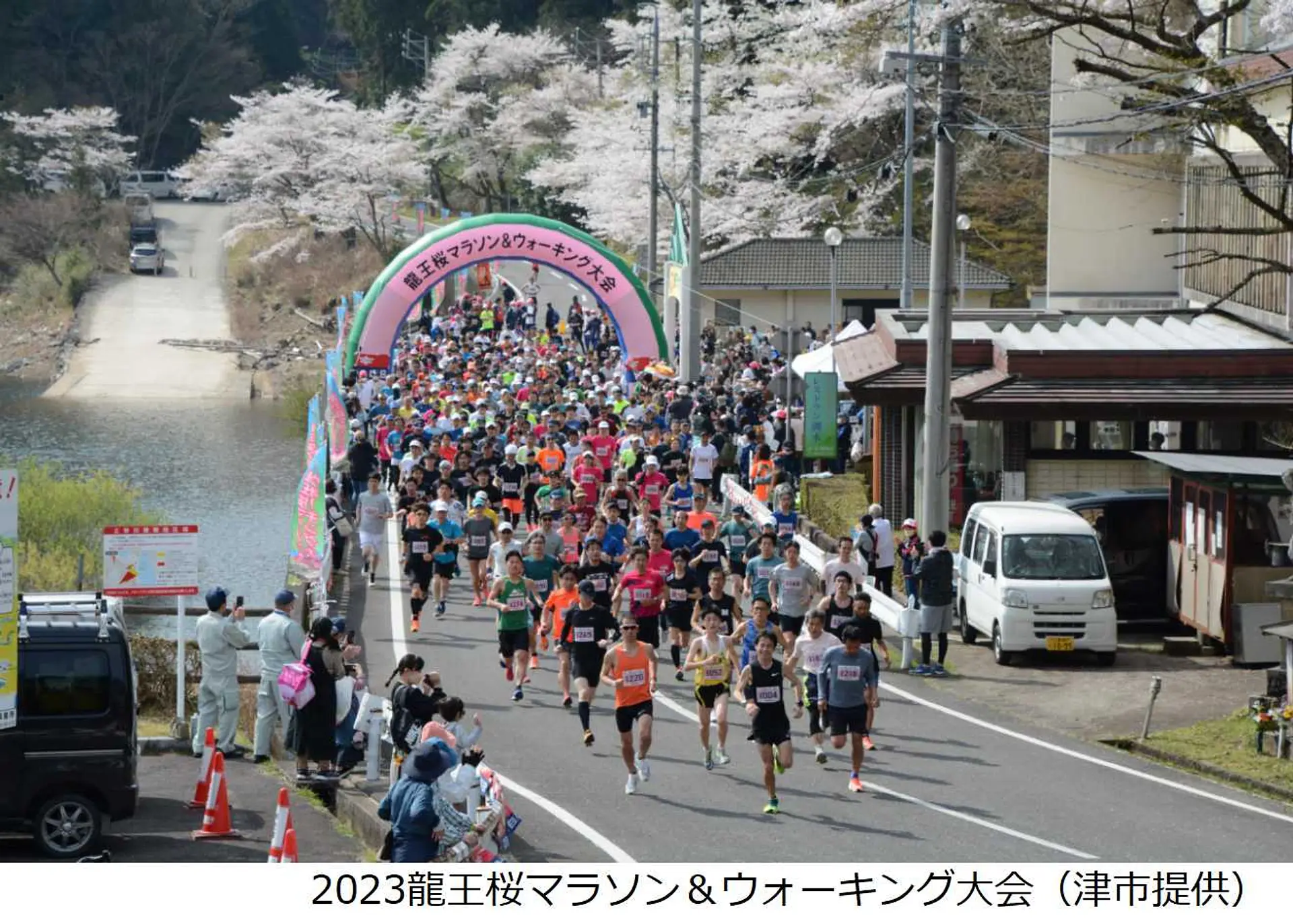 春にはマラソン・ウォーキング大会があり、年によっては上の写真のように桜が咲き誇る中での開催となることもあります。