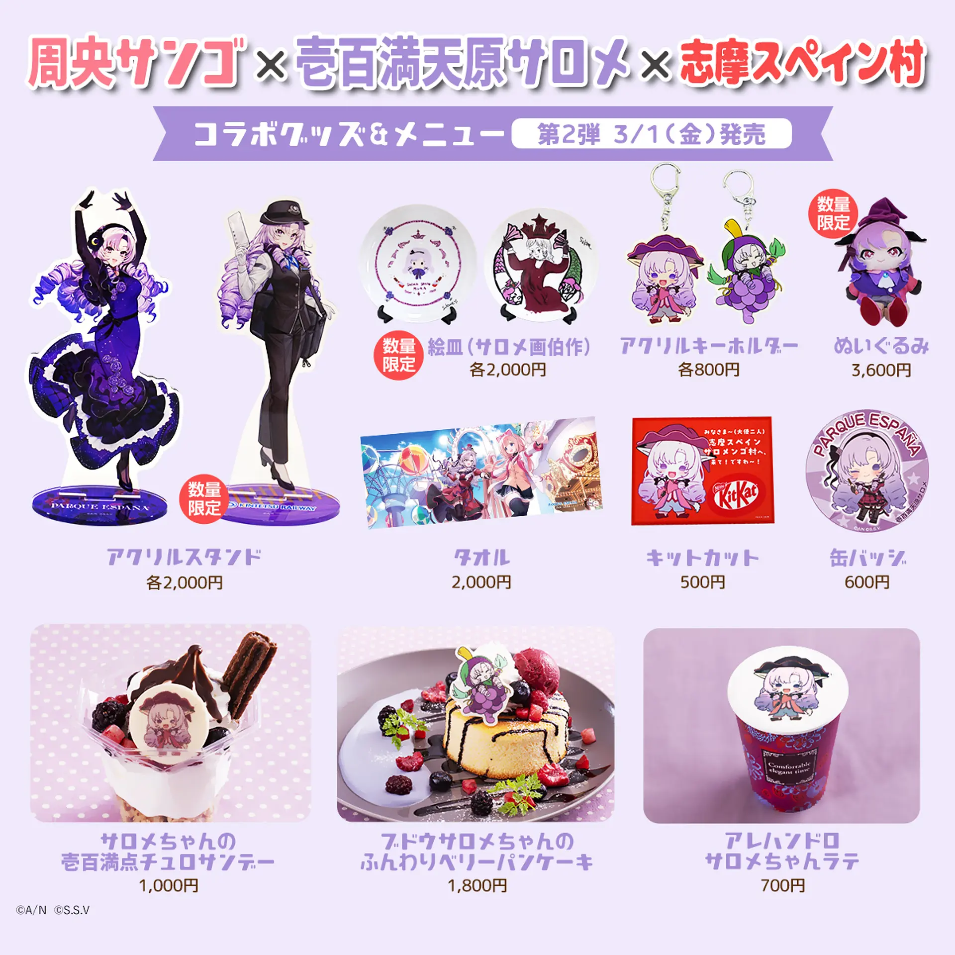 2月から発売中の周央サンゴちゃんコラボグルメに加え、壱百満天原サロメちゃんコラボグルメが3月1日(金)から新登場!その中身を紹介します。