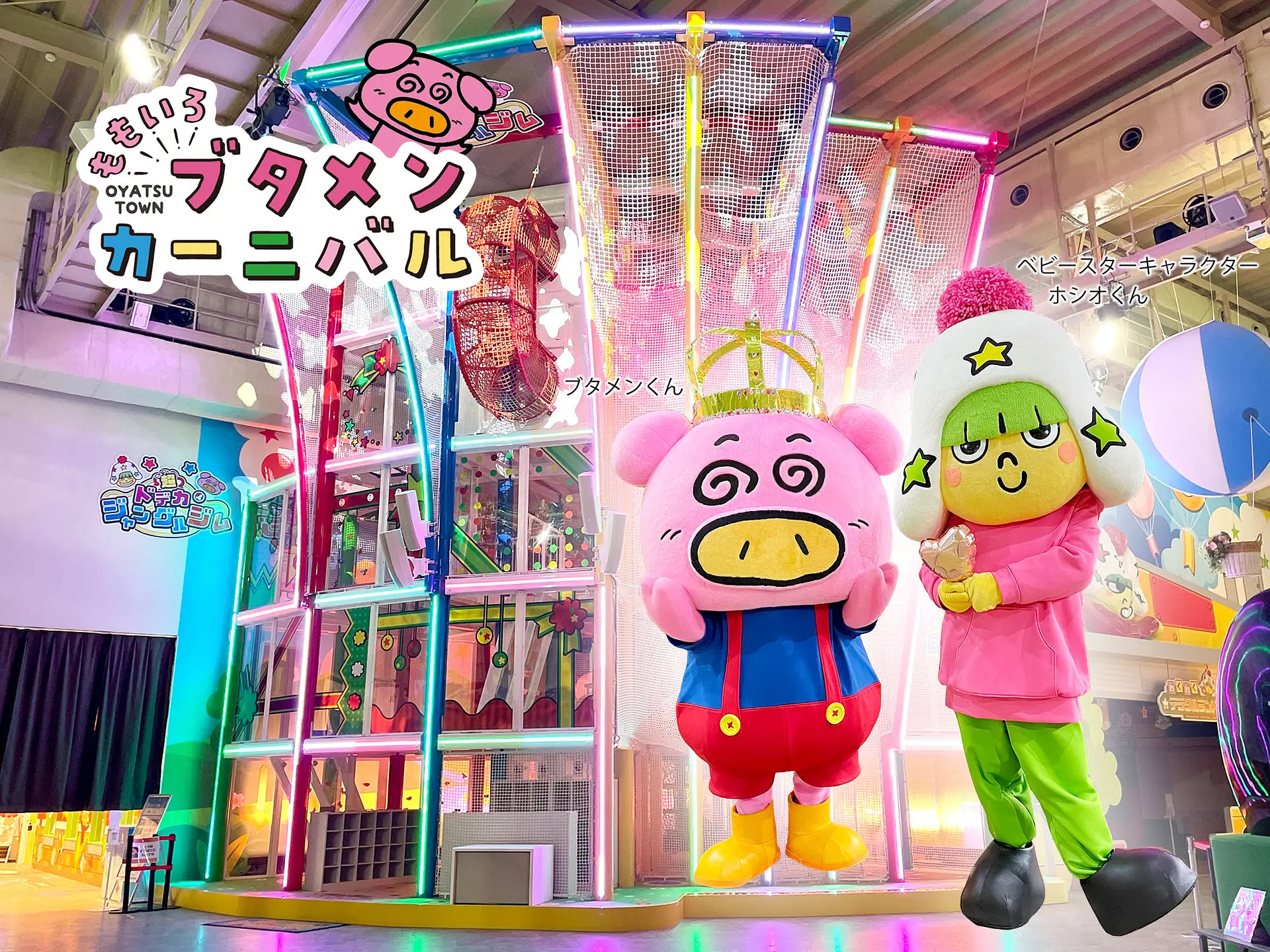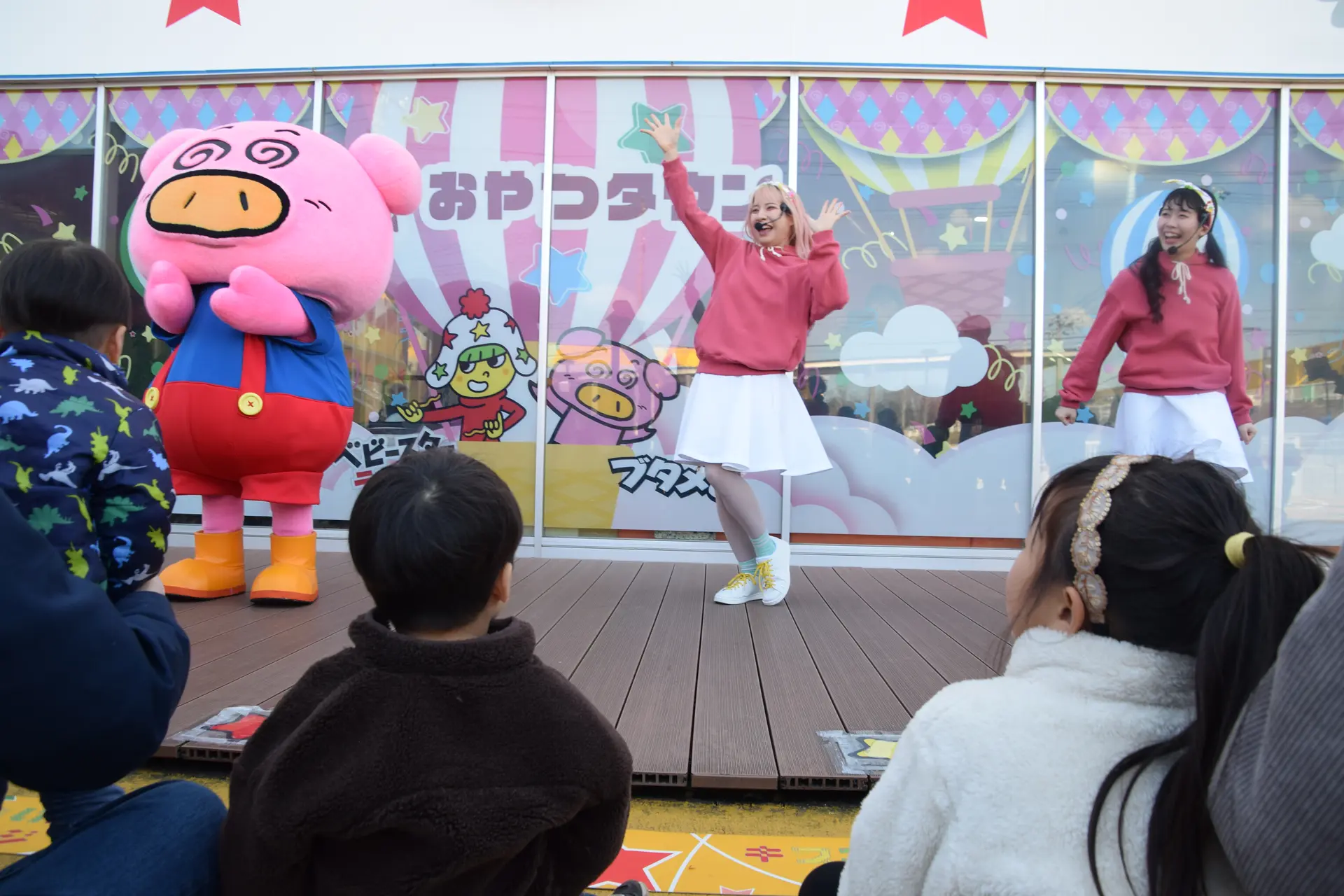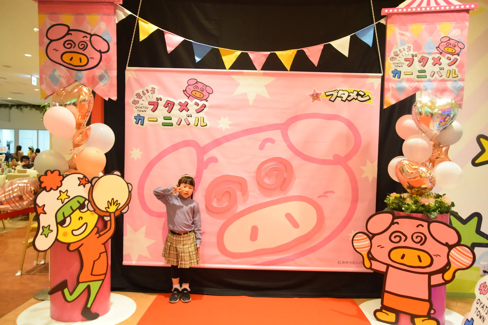 春限定イベントは、春の訪れを祝い「カーニバル」をテーマにブタメンキャラクター「ブタメンくん」が主役の「ももいろ(ピンク)」をテーマにしたおやつタウンだけの特別なプログラムになっています。