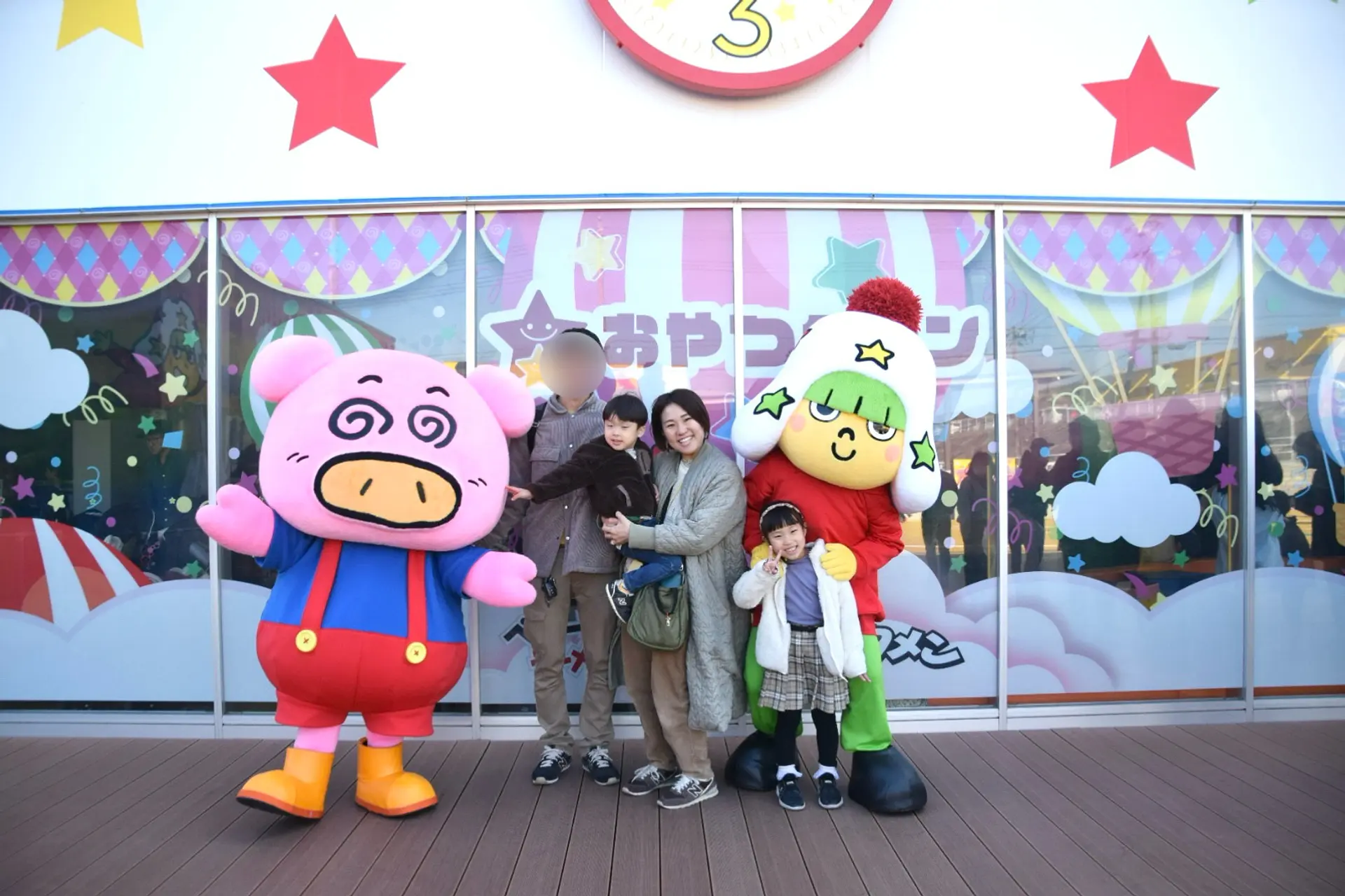 キャラクターショーでは、ホシオくんとブタメンくんが春らしい限定衣装で登場!特別な衣装のキャラクターとともに、春を楽しめますよ♪一緒にダンスをしたり、お誕生月のお友達のお祝いをしたり、最後には記念撮影もすることができます!