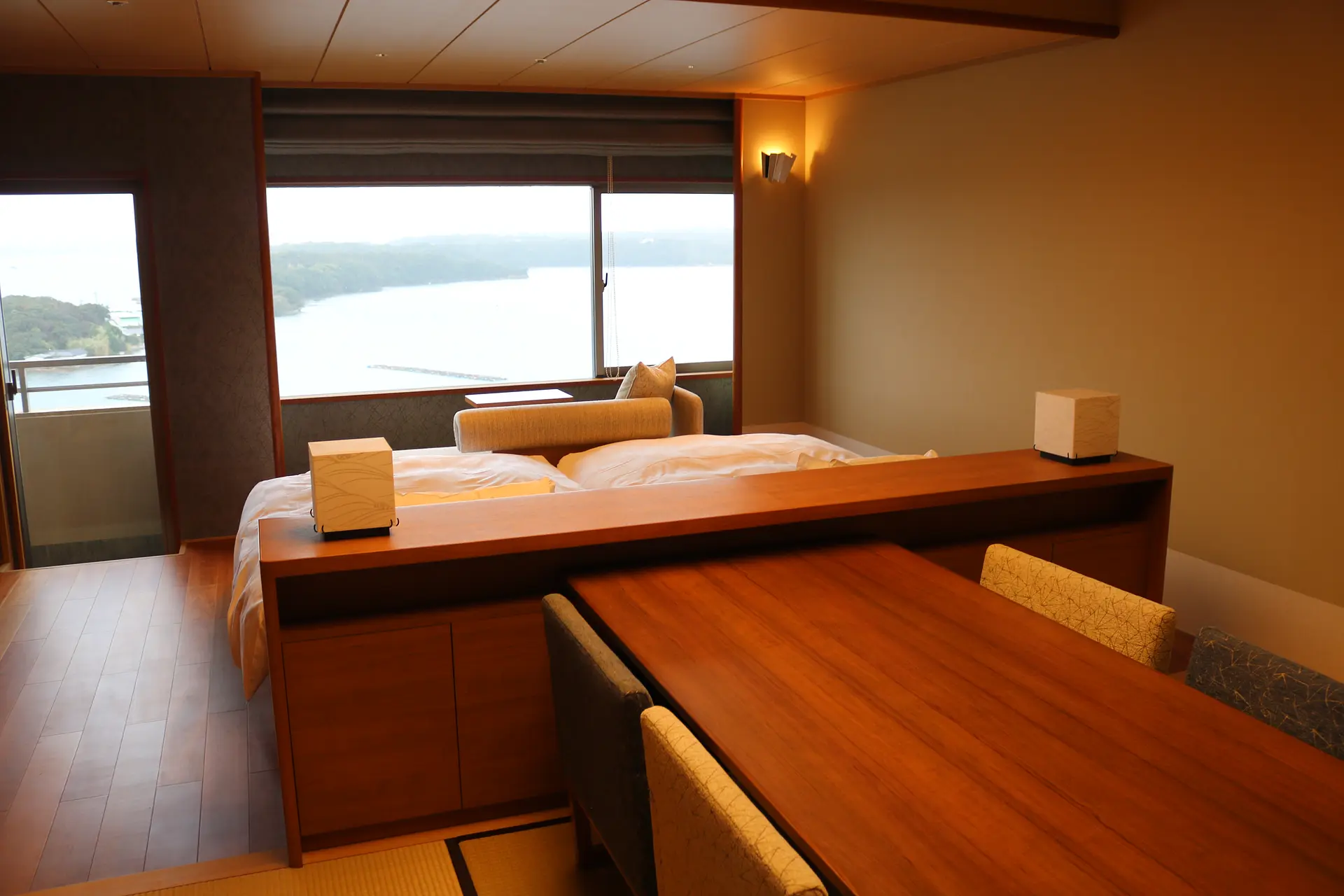 それに先立って、今回私たちは、9階のベッド付き和室に宿泊させていただきました。