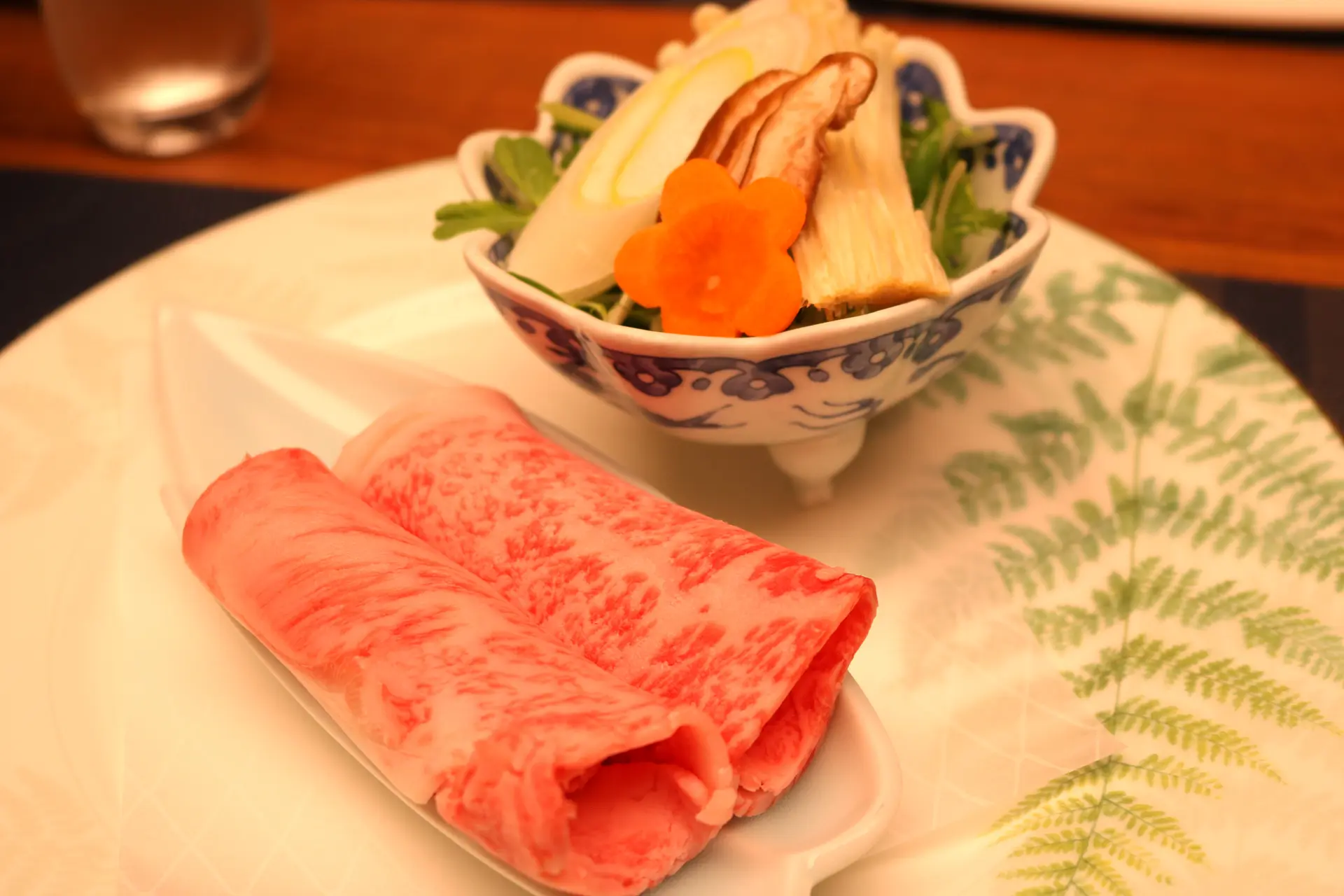 松阪牛のロース肉のしゃぶしゃぶは、あまりにもやわらかくとろけるお肉で、感動でした。