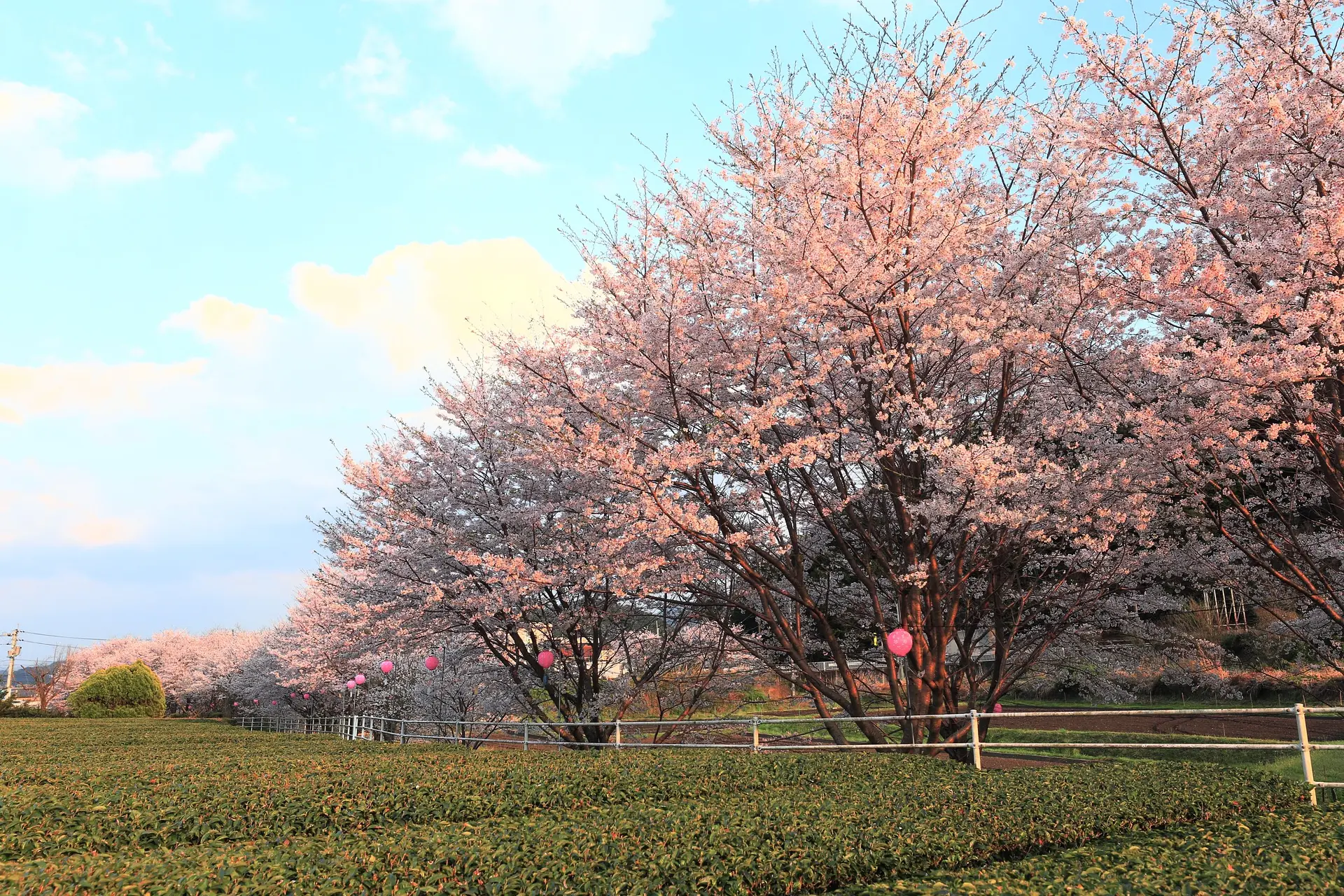 桜の季節に合わせてピンク色の提灯が飾られ、ライトアップされた夜桜見物はデートにもおすすめ。