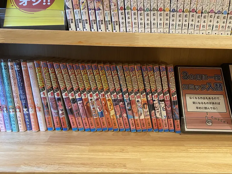 漫画好きって訳ではないけれど・・という人でも、タイトルは知ってる、ドラマの原作などたくさんの漫画があります。ちびまる子ちゃん、のだめカンタービレ、スラムダンク、パリピ孔明などなど。一度読んでみたかった漫画が見つかるかも。