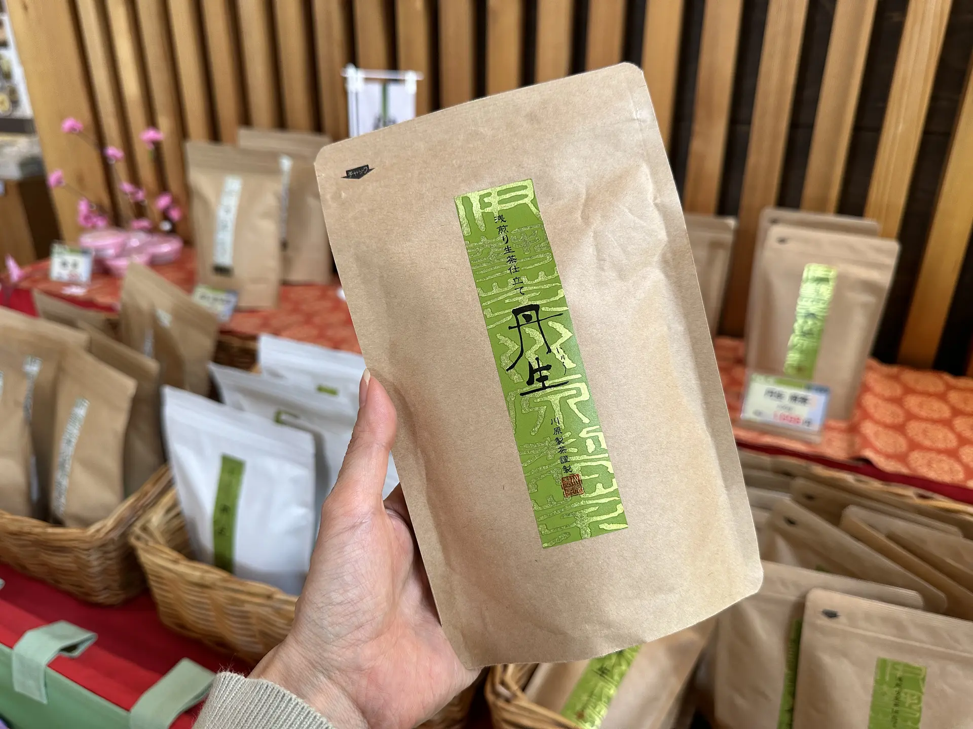 一番人気は「ふれあいの館」でしか手に入らない丹生で作られるお茶です。煎茶、荒茶、ほうじ茶があります。