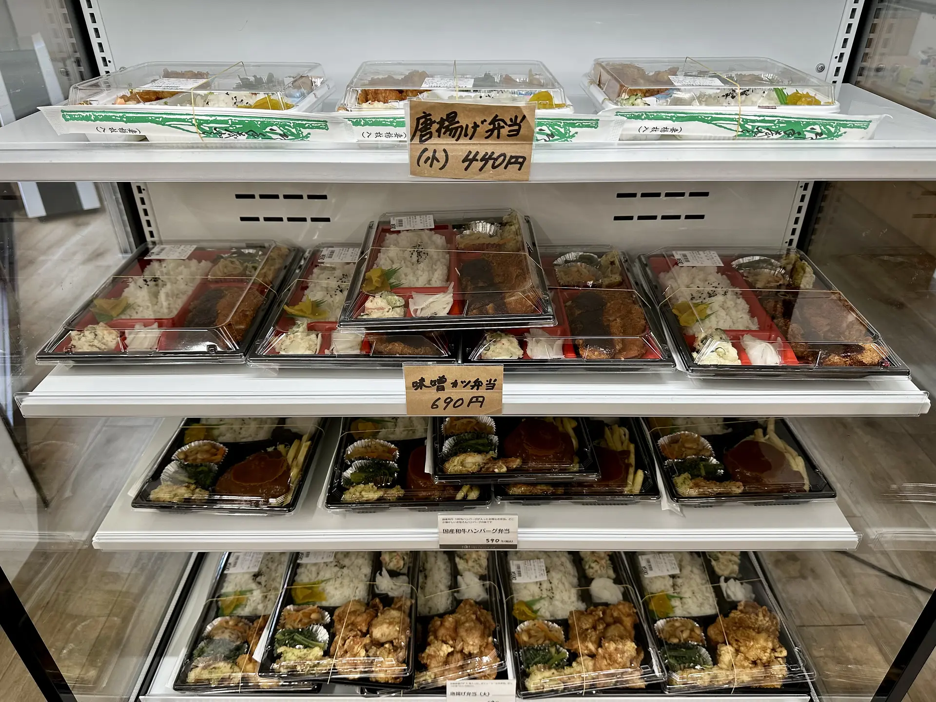 「マルシェグランマ」中央の売り場には、地域で作られた様々なお弁当が並びます。「マルシェグランマ」の名前の通り、おばあちゃんの味も手に入るかも。
