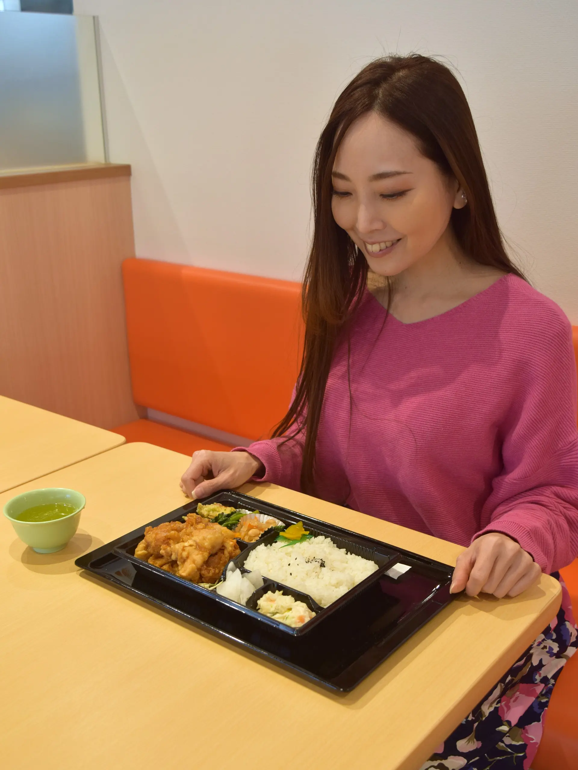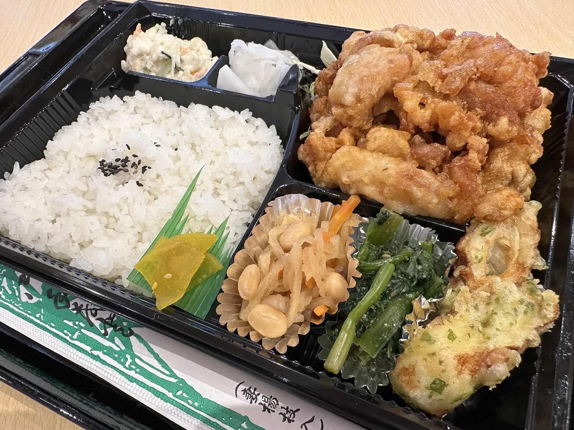 おすすめは、ごろっと大きな唐揚げが溢れんばかりに入った「唐揚げ弁当」。容器を飛び出してしまいそうなほどの驚きのボリュームです。