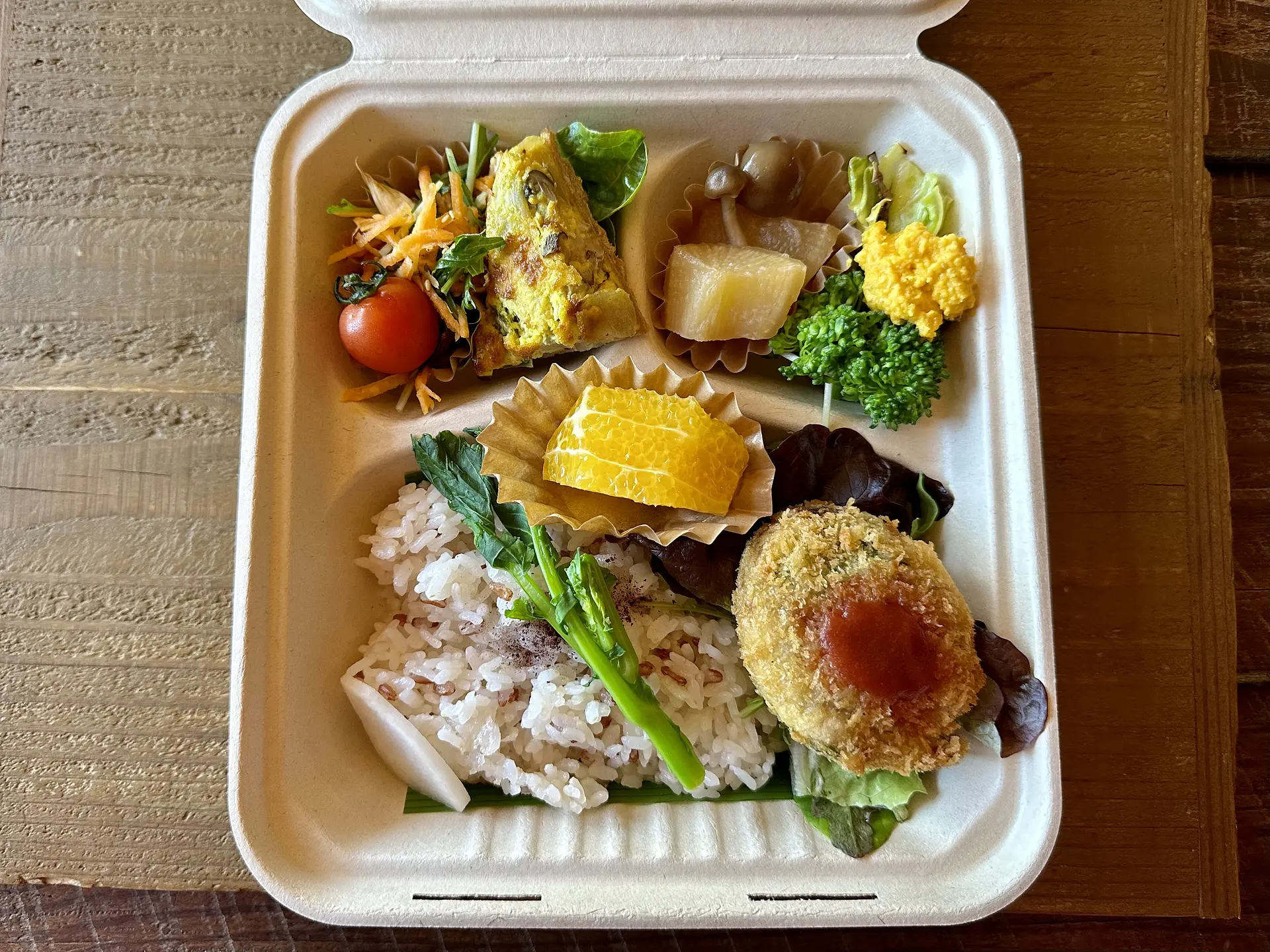 公園から車で3分で行けるランチとお弁当のお店「米ディナンバー1」は、オーガニックの野菜デリを詰め込んだおいしいお弁当が自慢です。