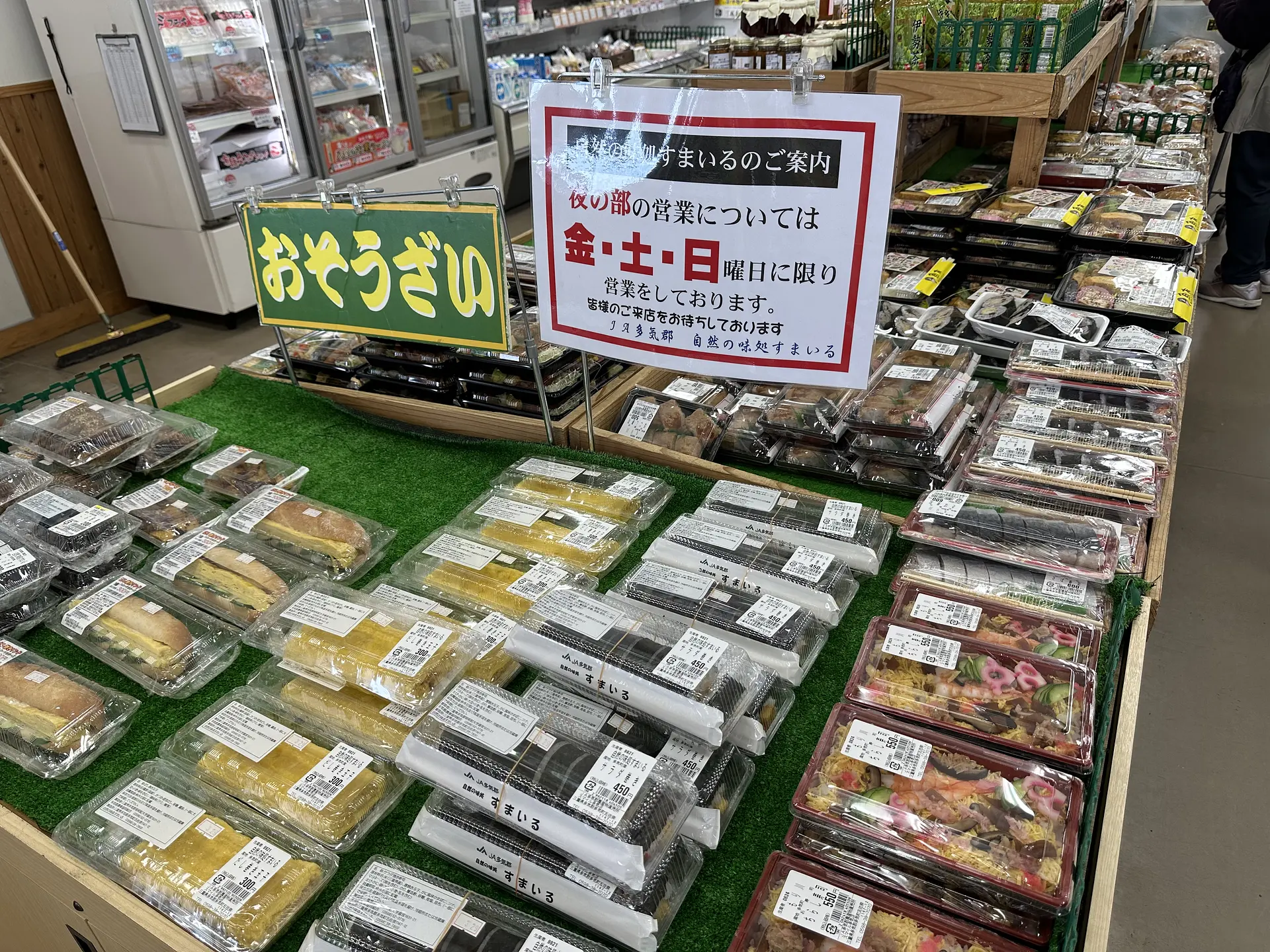 多気クリスタルタウンの敷地内にあるJA多気郡が手掛ける農産物直売所。新鮮な野菜や果物だけではなく、おいしいお弁当やお惣菜、お花見に持っていきたいスイーツまでが手に入ります。