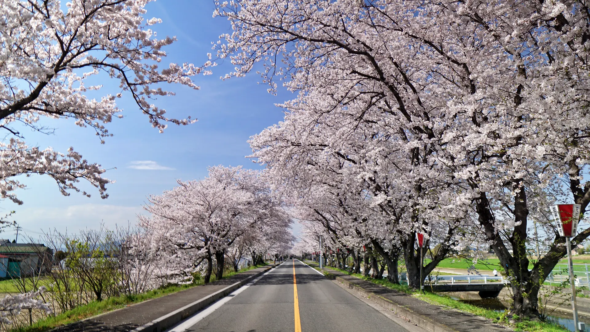 桜のトンネルが随所にあり歩道だけでなく、車道にも桜のトンネルが広がっており、ドライブがてら桜を楽しめる珍しいスポットです。