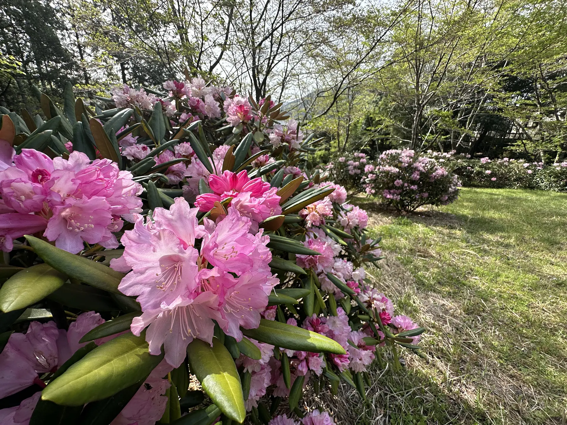 2024年4月13日現在、シャクナゲの開花状況は3割程度。