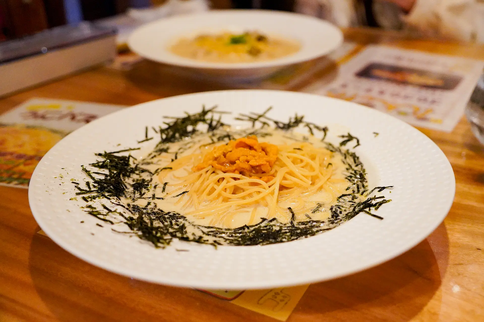 筆者のように、ウニもカキも好きな方はどちらにしようか悩みますよね…そんな方には、2種類のパスタが合体した「ウニカキパスタ」なるメニューもあります。間違いなくおいしいでしょう!