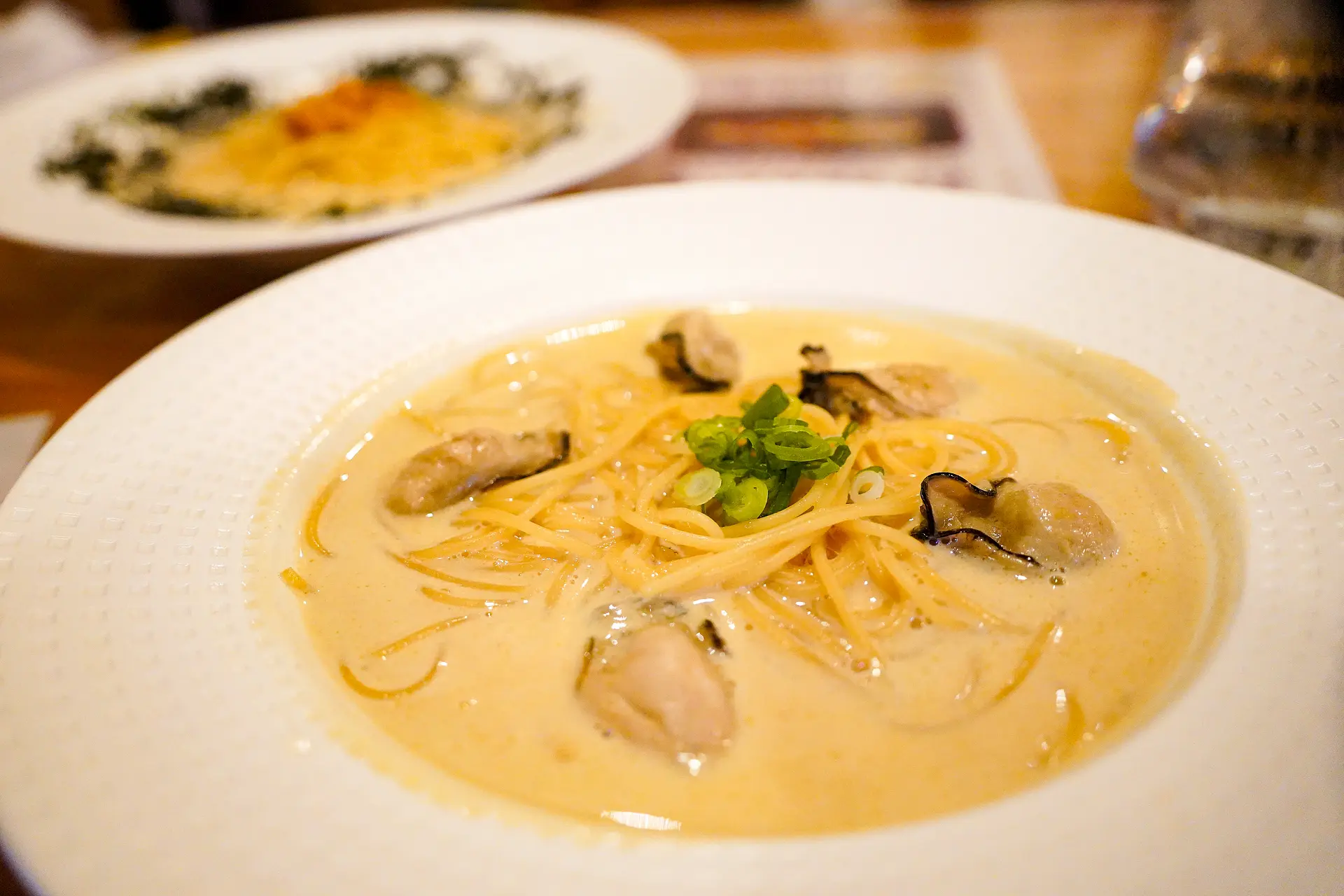 スープとも言えるなみなみのソースには、カキのうまみがしっかり染み出しています。カキ好きにはたまらないパスタの登場に筆者も歓喜しました!