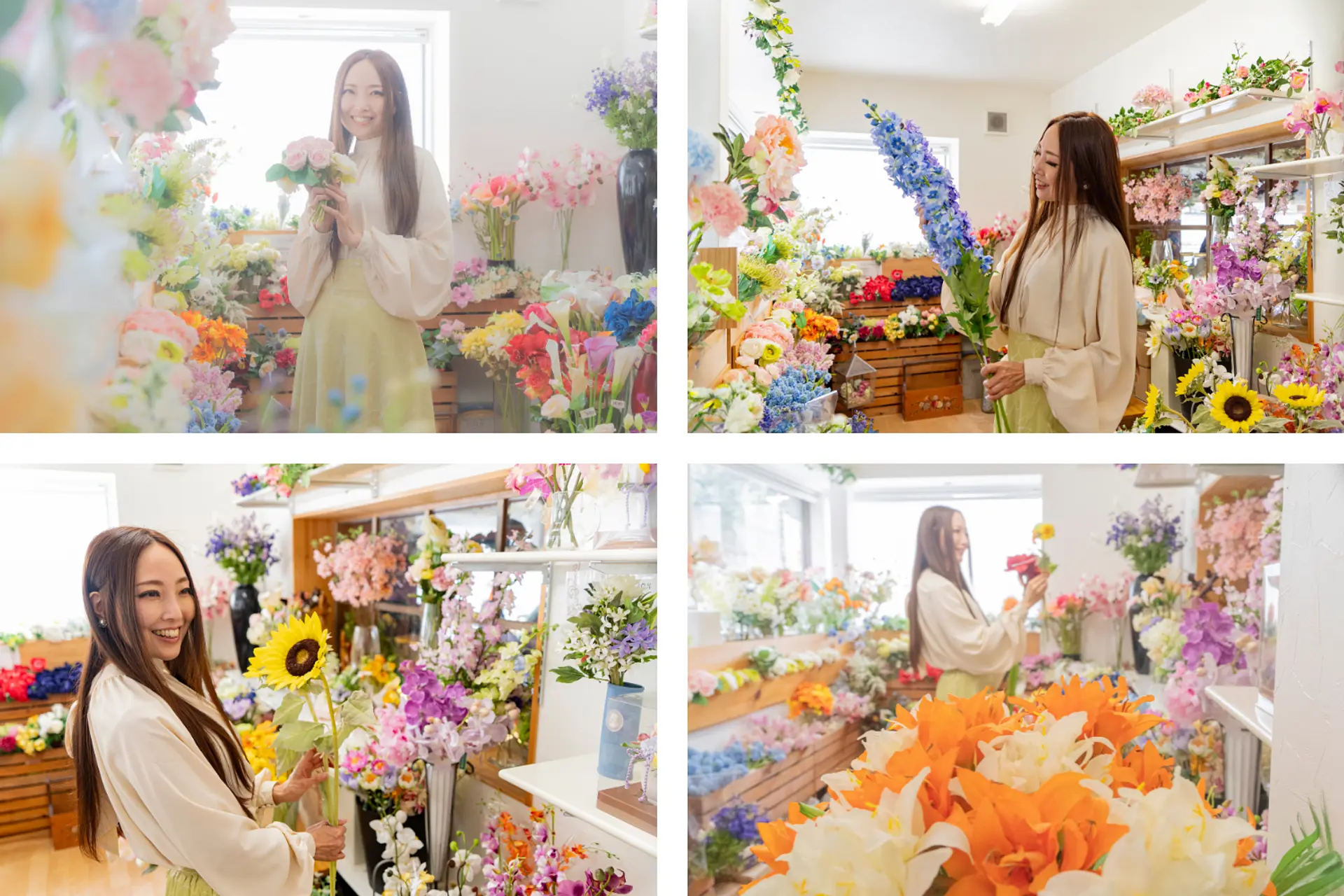 大小様々なかわいいお花たち。手入れの必要がなく置く場所も選ばないアートフラワーで、自宅やオフィスのインテリアを飾りつけたくなりますね。