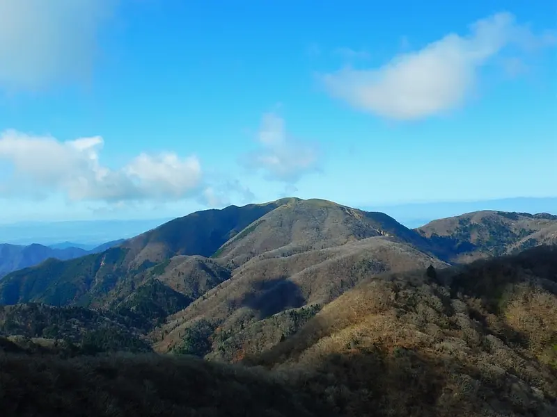 三重県いなべ市と滋賀県東近江市の境、鈴鹿セブンマウンテンの中央に位置しています。山頂一帯がのびやかな稜線をしているのが特徴で、360°の展望を楽しみながら登山ができます。
