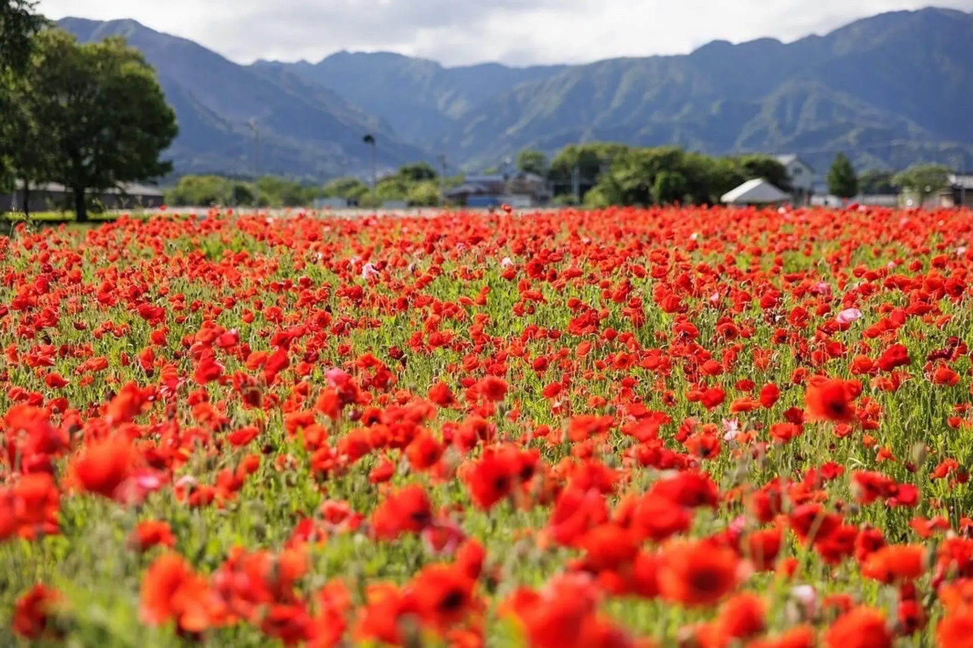 春の陽気のもとで咲き誇る5万株(約20万本)のシャクヤクやポピーの花と一緒にお楽しみください。