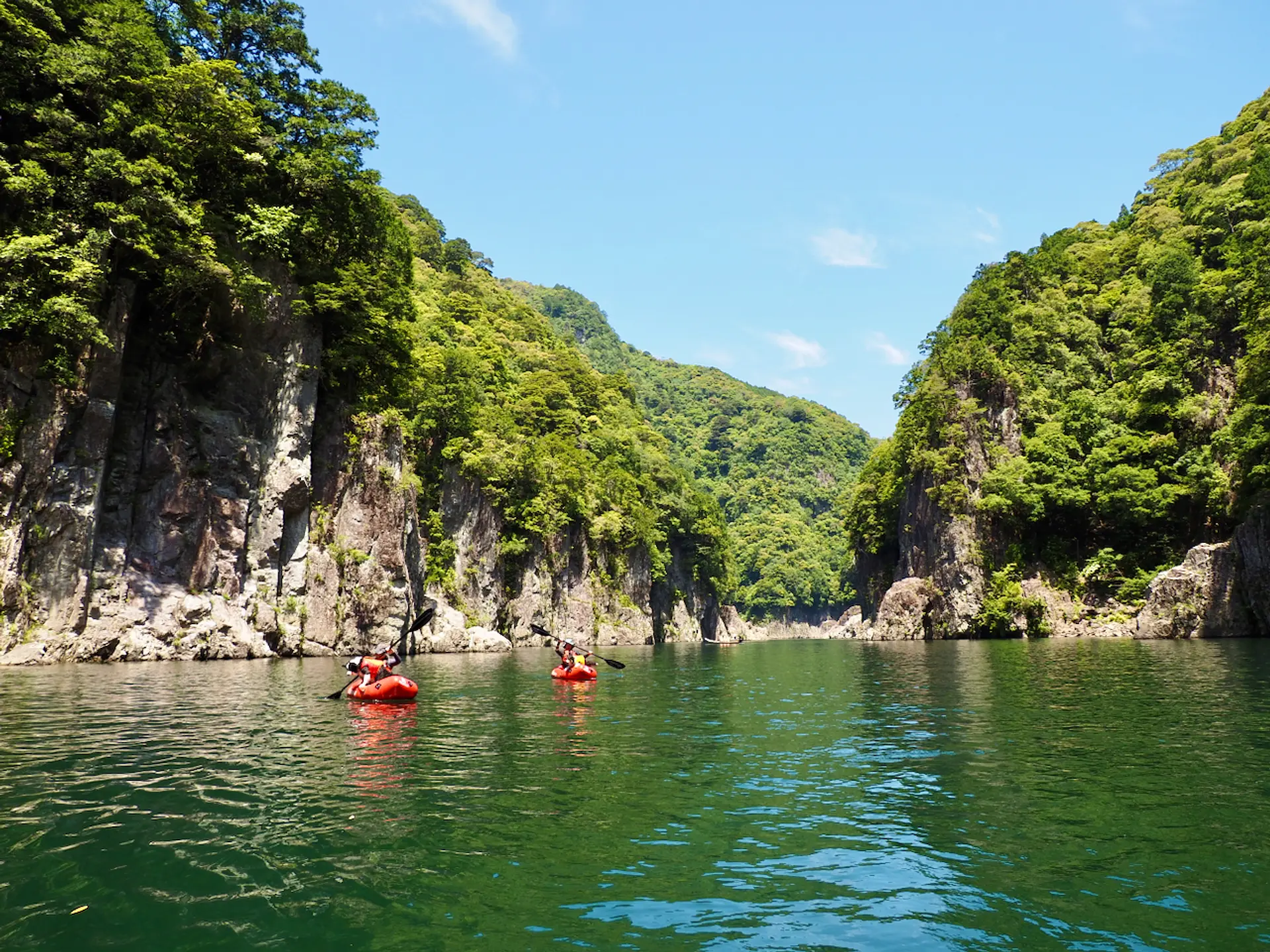 瀞峡は川の流れがゆっくりな上に美しい景色が続くので、アクティビティ初心者にもおすすめな場所です。瀞峡パックラフト半日ツアーでは、パックラフトで自由に動き回りながら絶景を堪能できますよ♪