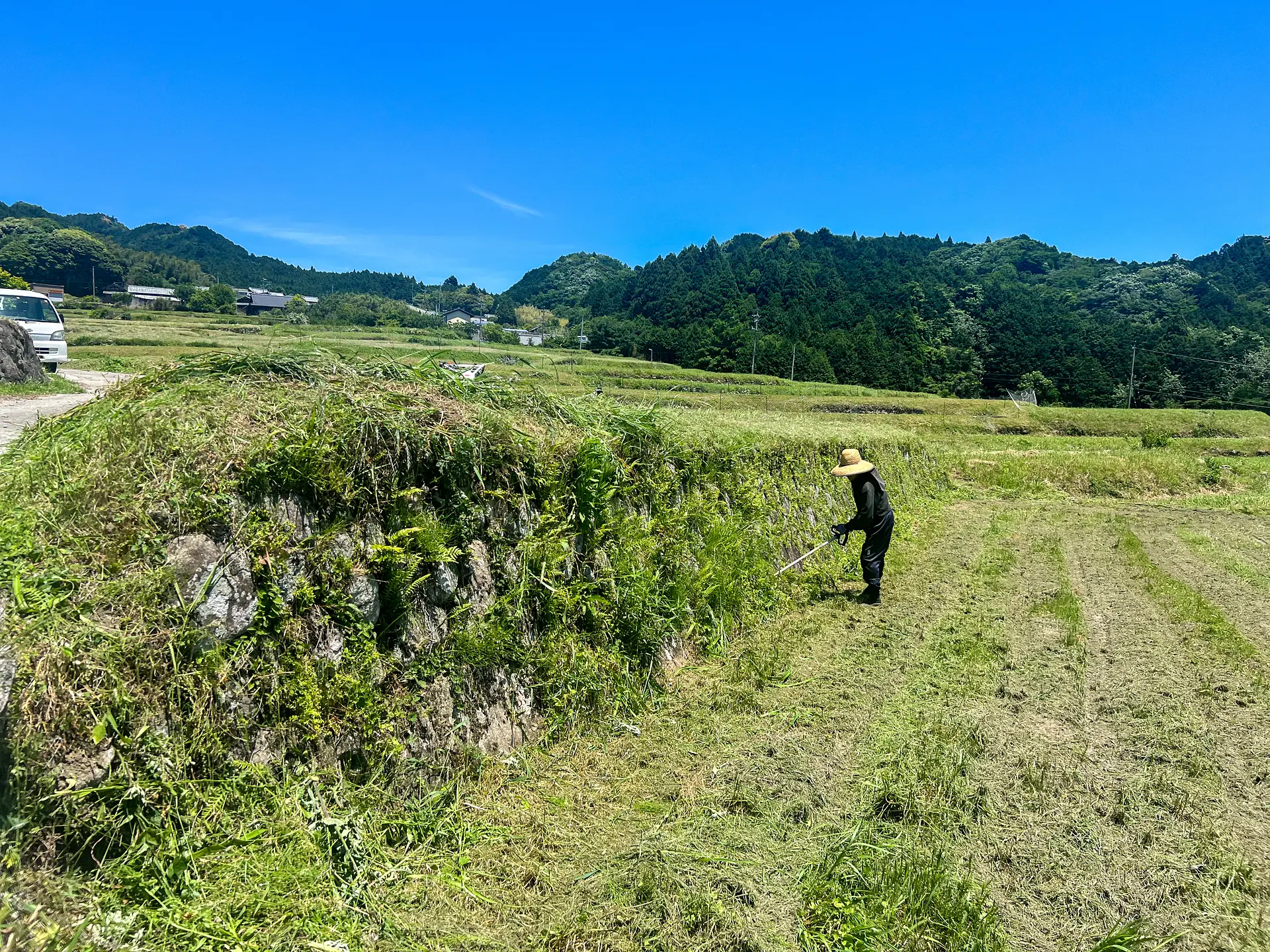 取材した日は、棚田の景観を守るために石積み周辺や水田を中心に草刈作業が行われていました!