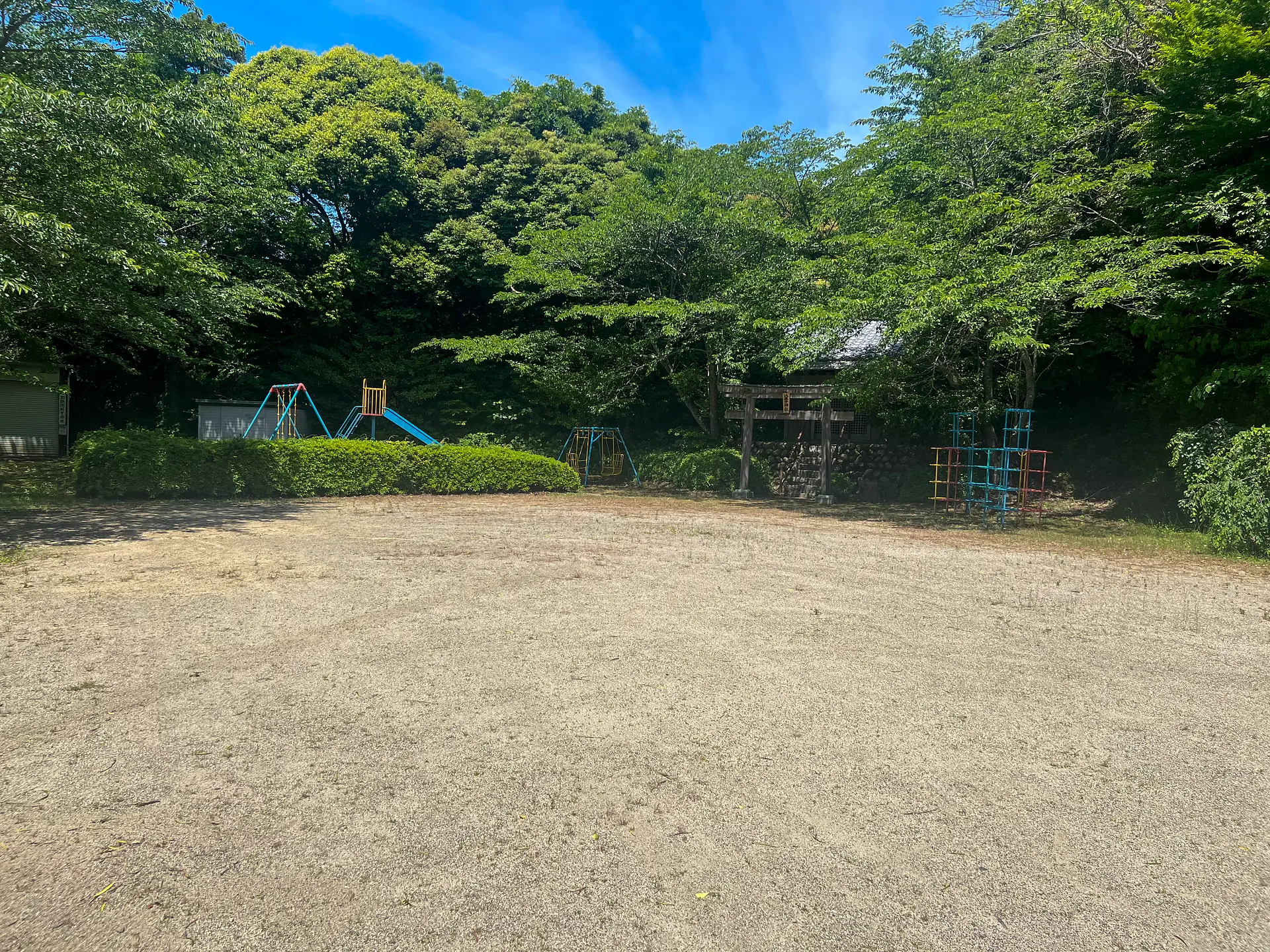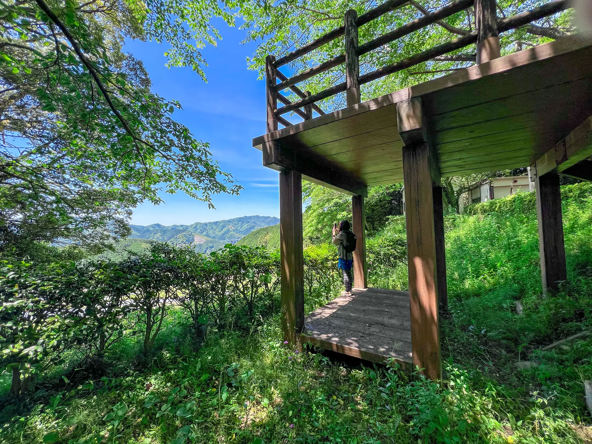 ⑥坂本農村公園展望台に到着です!広場には八王子神社・公園があります。左手に棚田を見渡せる展望台があります。展望台の下からも景色がよく見えますよ!