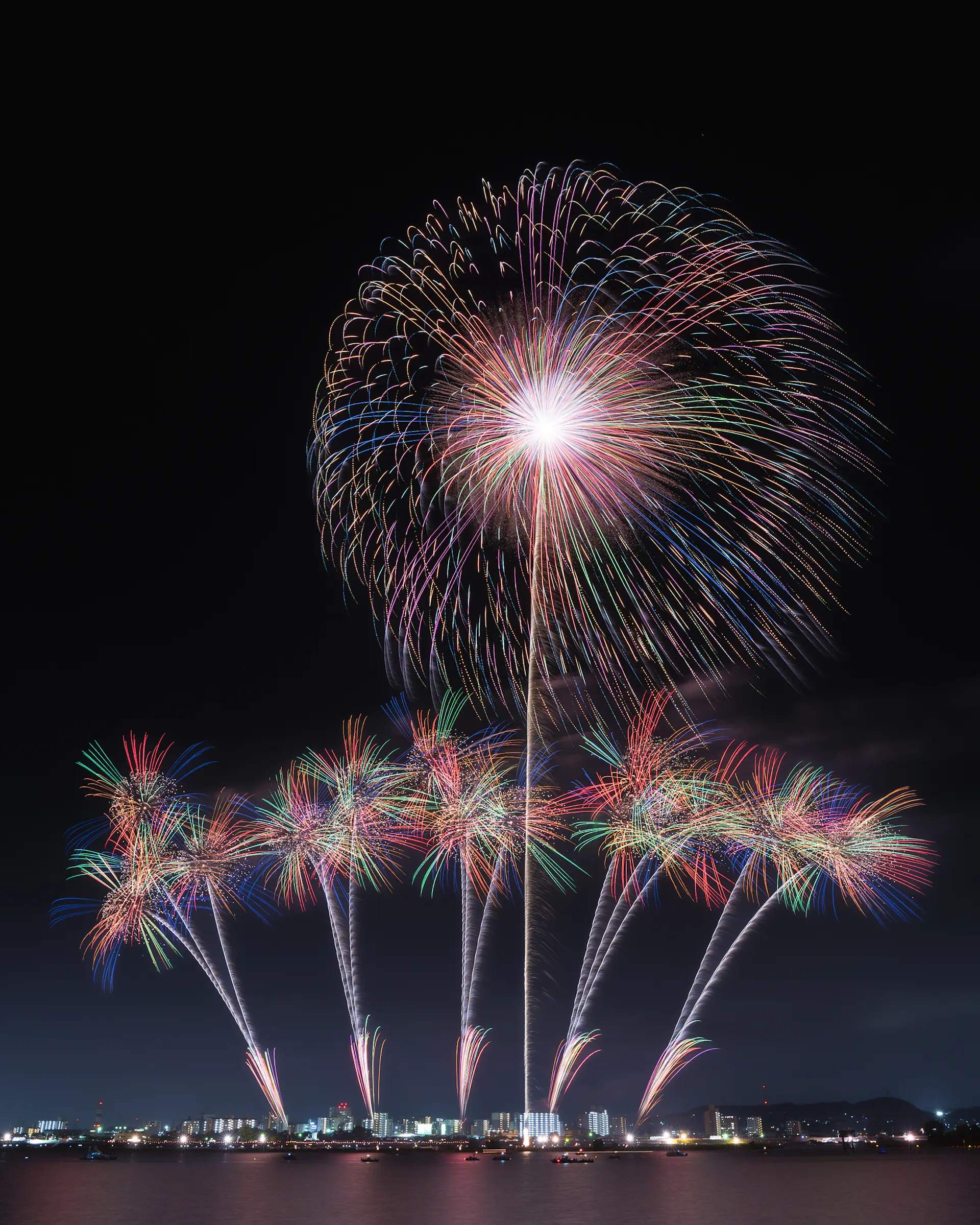 桑名市は川や海に面していることから”水郷のまち”として親しまれてきました。木曽三川の一つ揖斐川(いびがわ)の河畔から打ち上げられる花火は約1万発で、2尺玉の打ち上げなど見どころ豊富です。