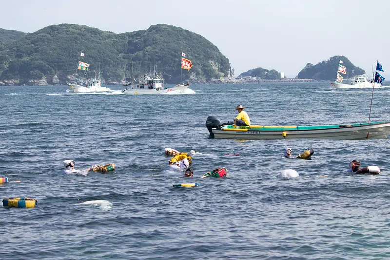 鳥羽市の離島・菅島にある「しろんご浜」と「白髭神社」で開催される海女さんの祭典。