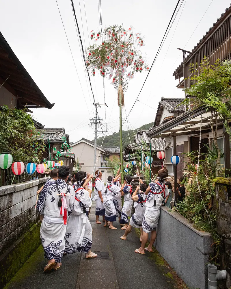 町練りでは大きな竹飾りを絶対に倒さないように運ぶ業も見逃せません!!