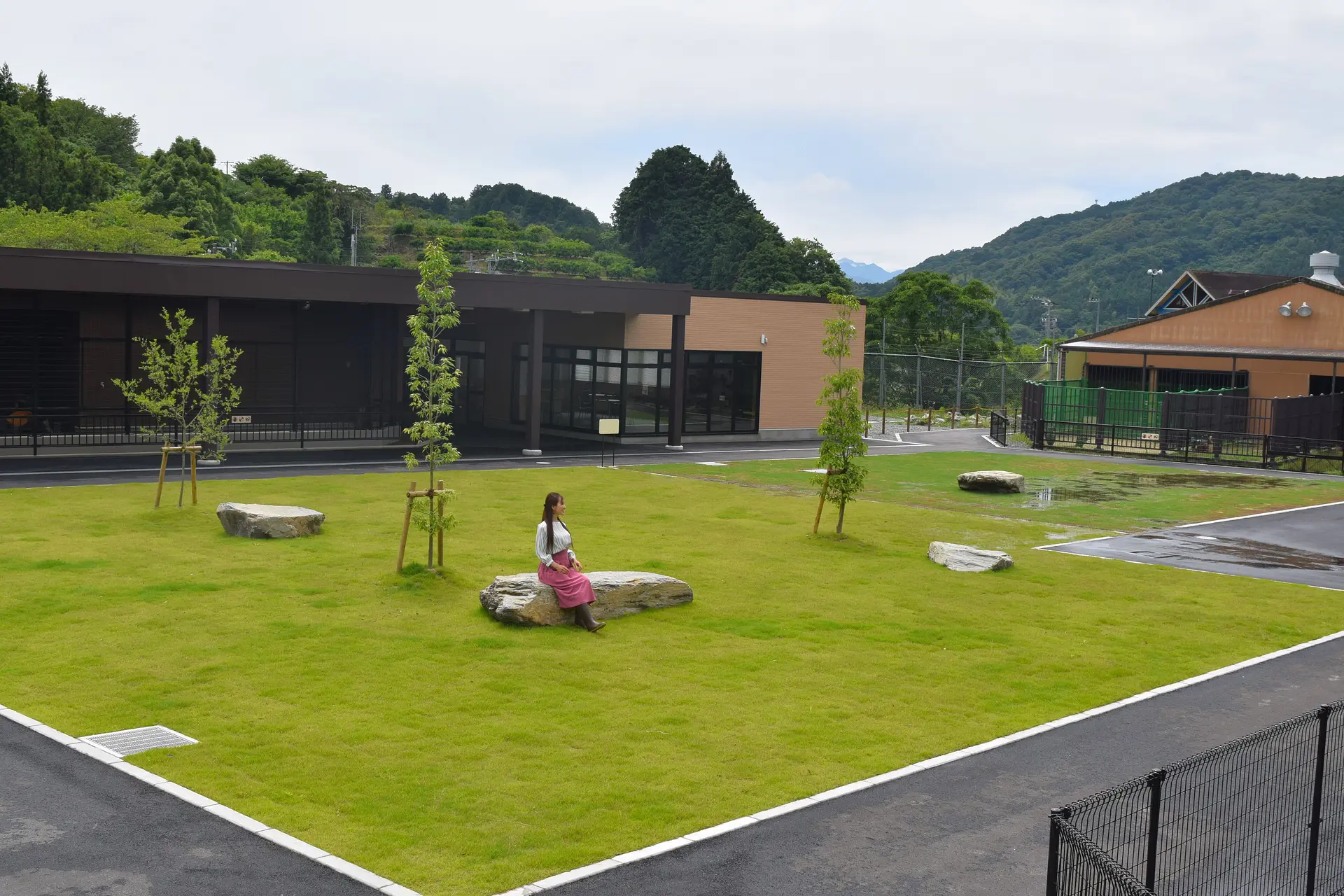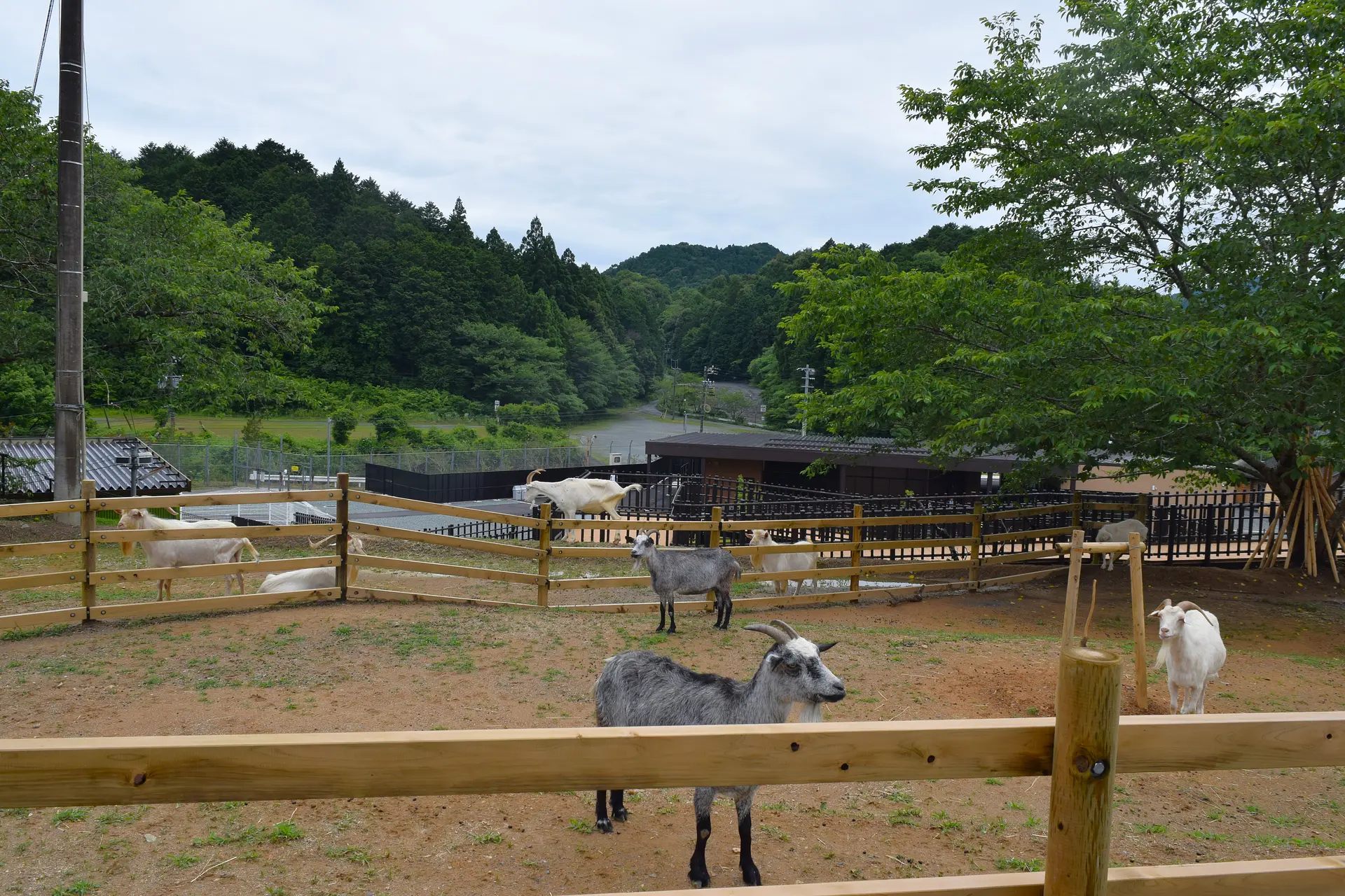 パーク一面に美しい緑が広がり、敷地中央にスロープデッキが完成しました。デッキを囲むように「めーべーぞーん」としてヤギさんが自由に行き来しています。ヤギだけでこれだけの広さの飼育スペースがあるのは、日本でも珍しいのだとか。