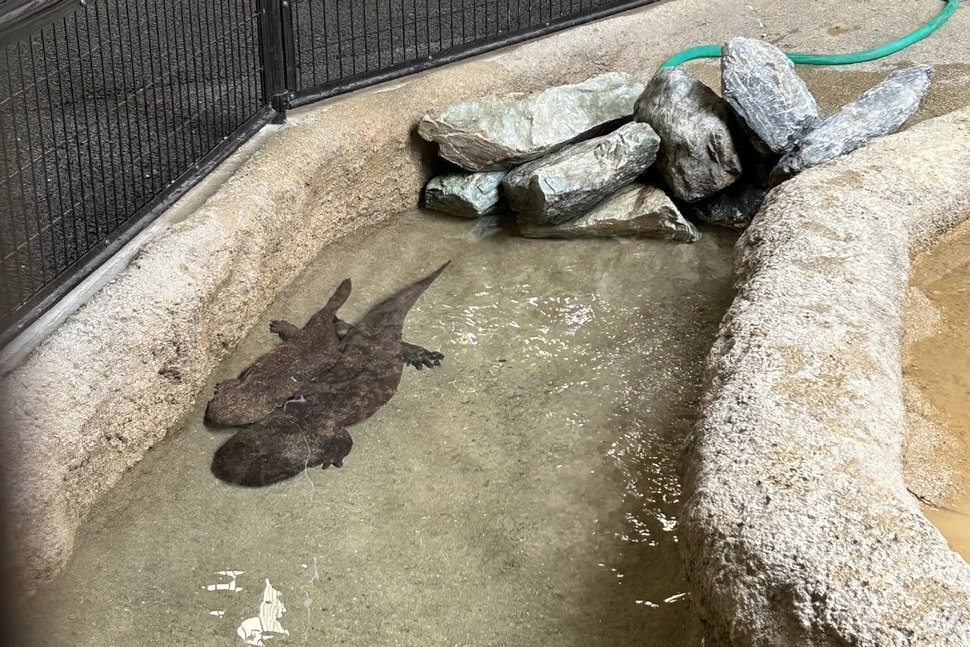 「名張市郷土資料館」からお引越ししてきたという2匹は、水の中でゆっくりと移動する様子も見せてくれました。動物園好きの私、動くオオサンショウウオを見たのは初めてで感動しました!