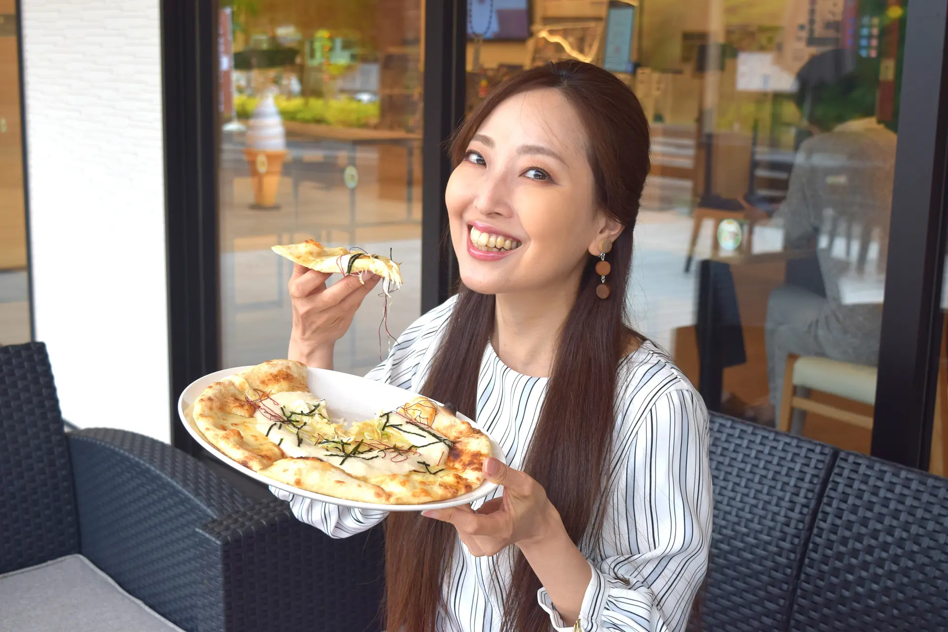 そして、私が食べているのは、ご当地ピザの「たきピザ」から「伊勢いもトロロのとろとろ和風ピザ」です。多気町の特産「伊勢いも」とチーズのとろける和洋折衷コンビがマッチしておいしい!定食やカレー、うどんなどご当地メニューが楽しめる「マルシェグランマ キッチン」で涼しいランチタイムを過ごすのもいいですね!
