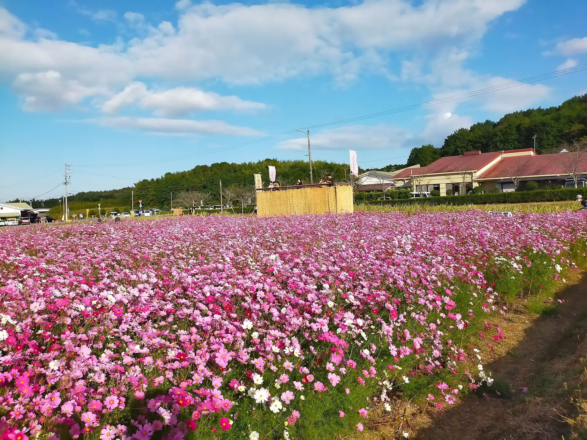 三重県度会郡玉城町にある「アスピア玉城」は、温泉施設や産直市場、レストランがある複合施設です。施設の横にある広大な田畑では、季節によってひまわりやコスモス、菜の花などを栽培しています。