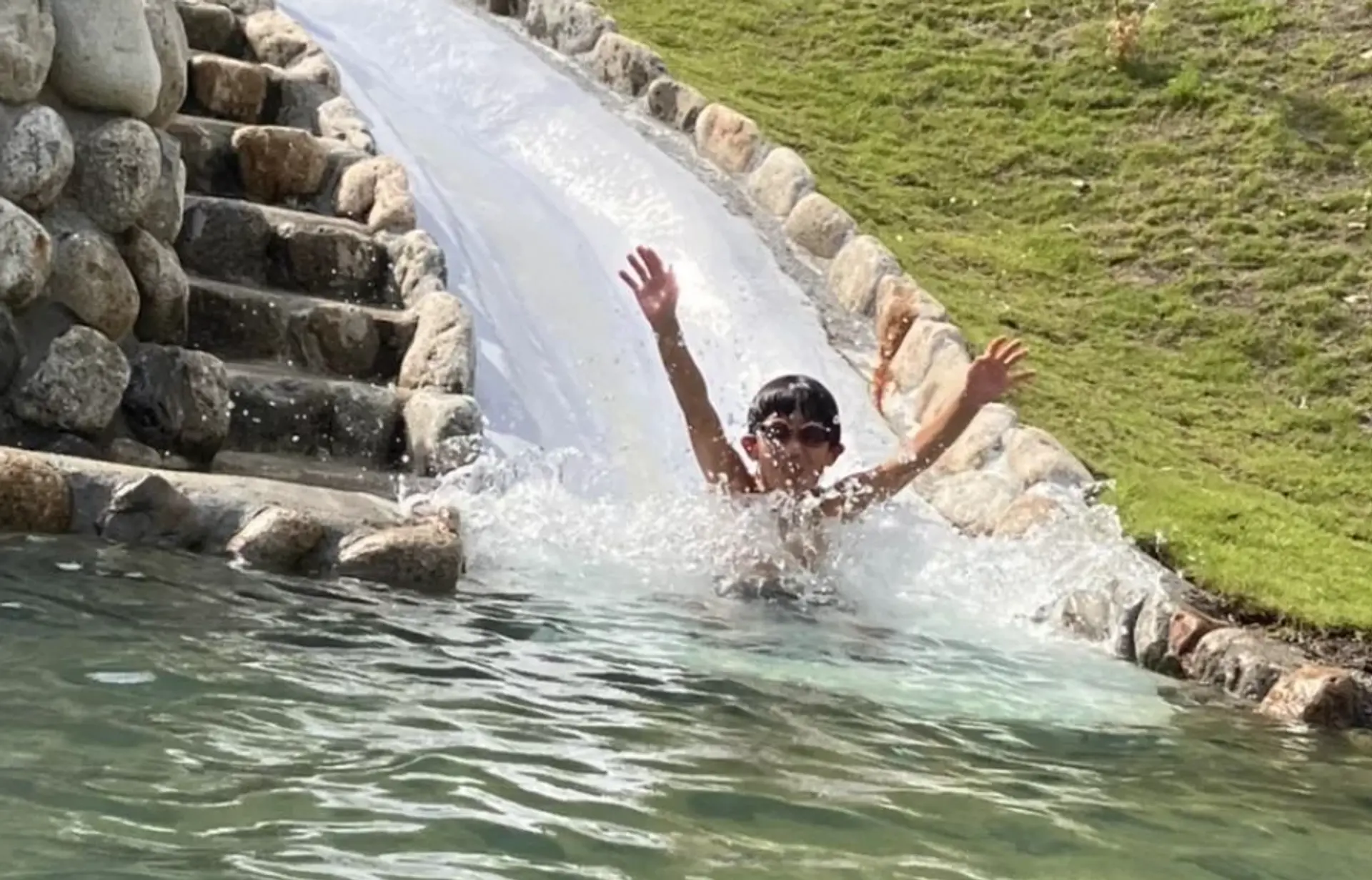 また場内には滑り台付きの池があり、夏は子供達に大人気!その他にもブランコや鉄棒、うんていなどの遊具もあり、思う存分遊べますよ!