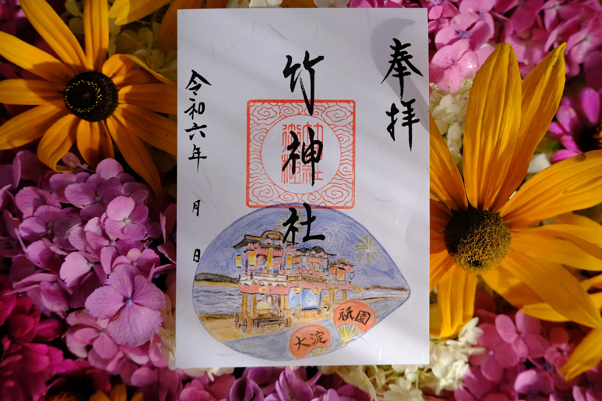 竹神社の7月限定御朱印は、大淀祇園祭がテーマとなった御朱印と七夕がデザインされた御朱印。7月中の毎週土曜日・日曜日限定で頒布されます。