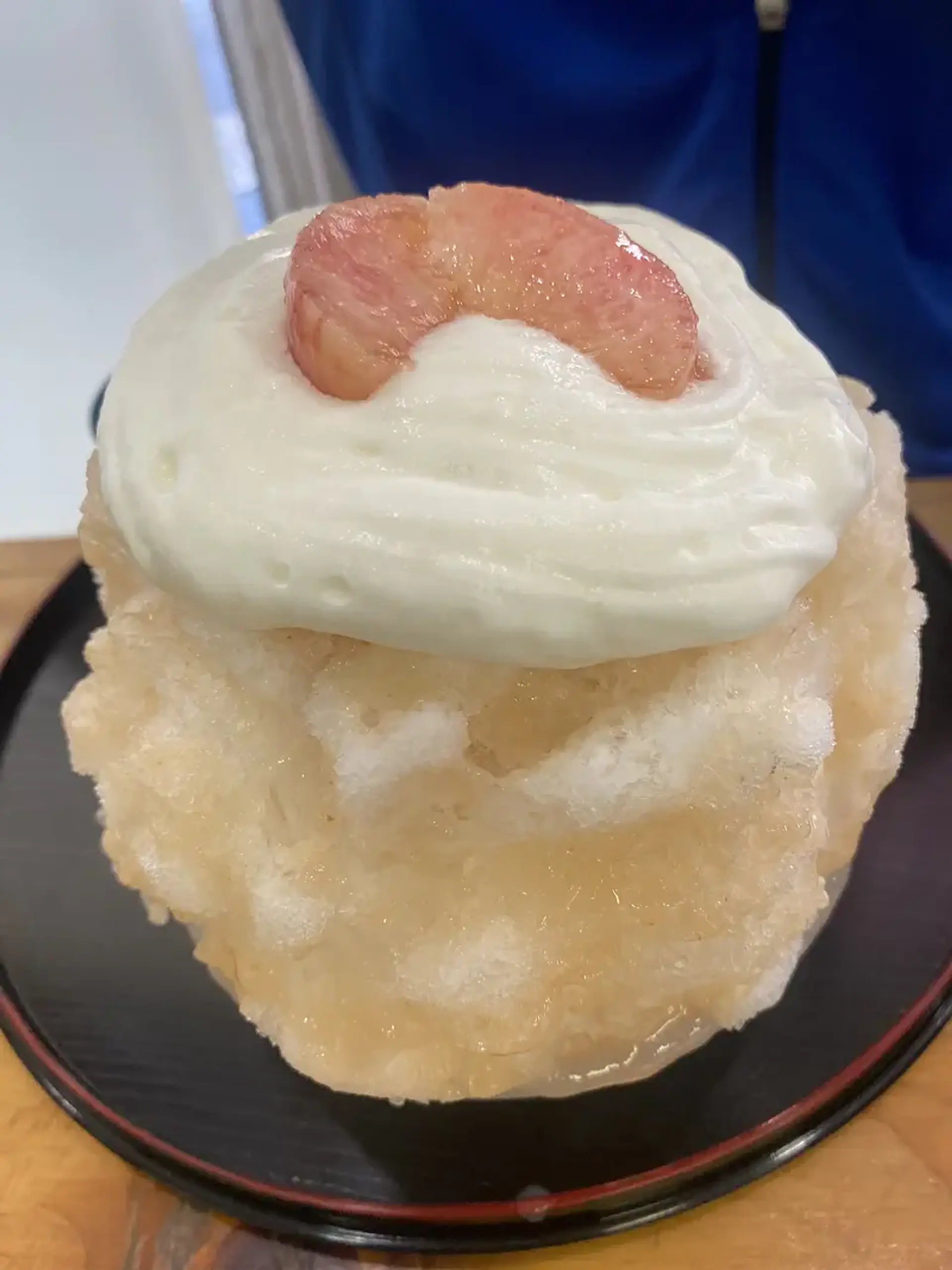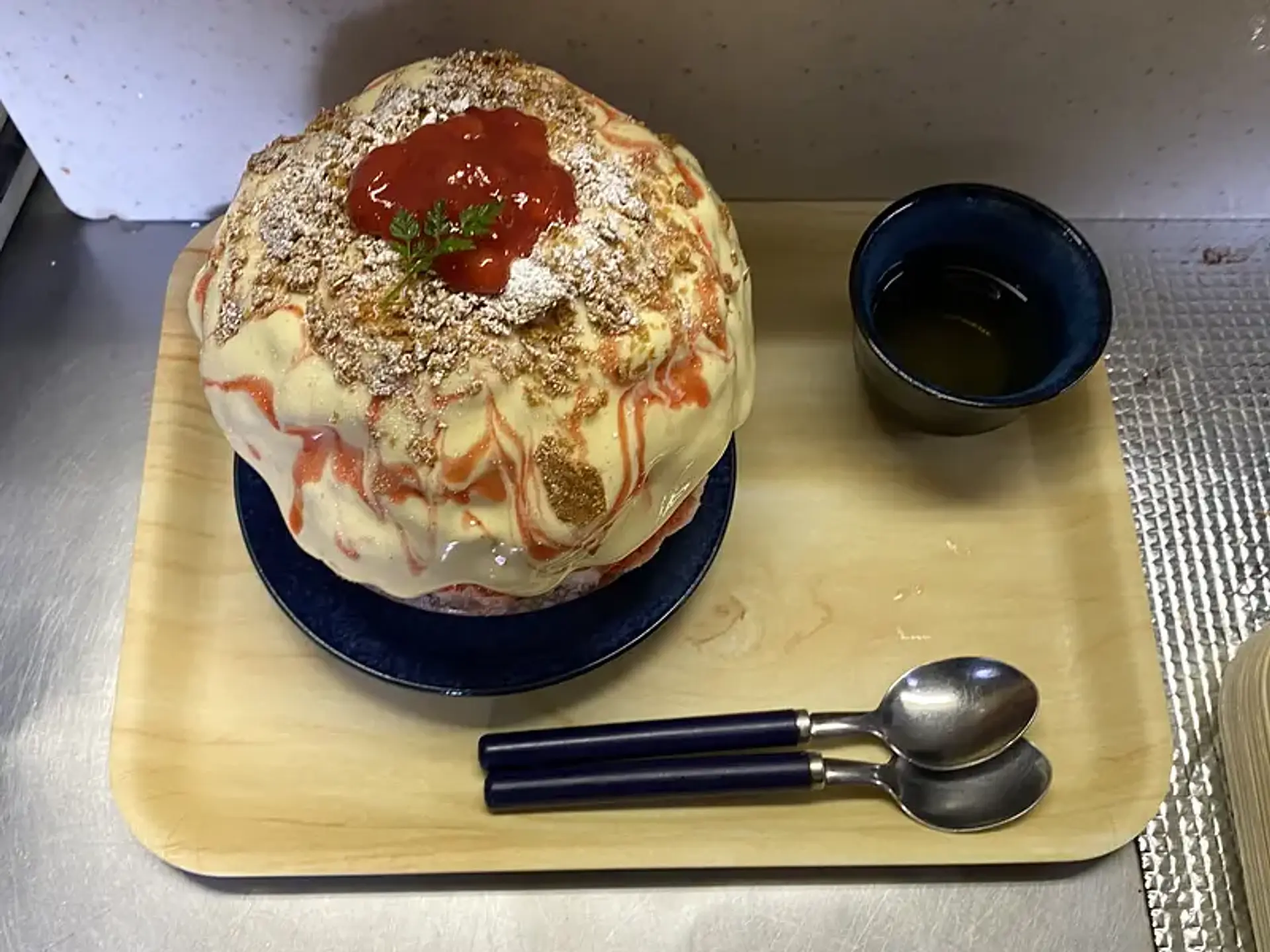 洋菓子屋さんが作るかき氷なので、カスタードソースの一種のアングレーズソースや、エスプーマ、コンポートやジェラードを使い、豪華なスイーツかき氷が楽しめます。