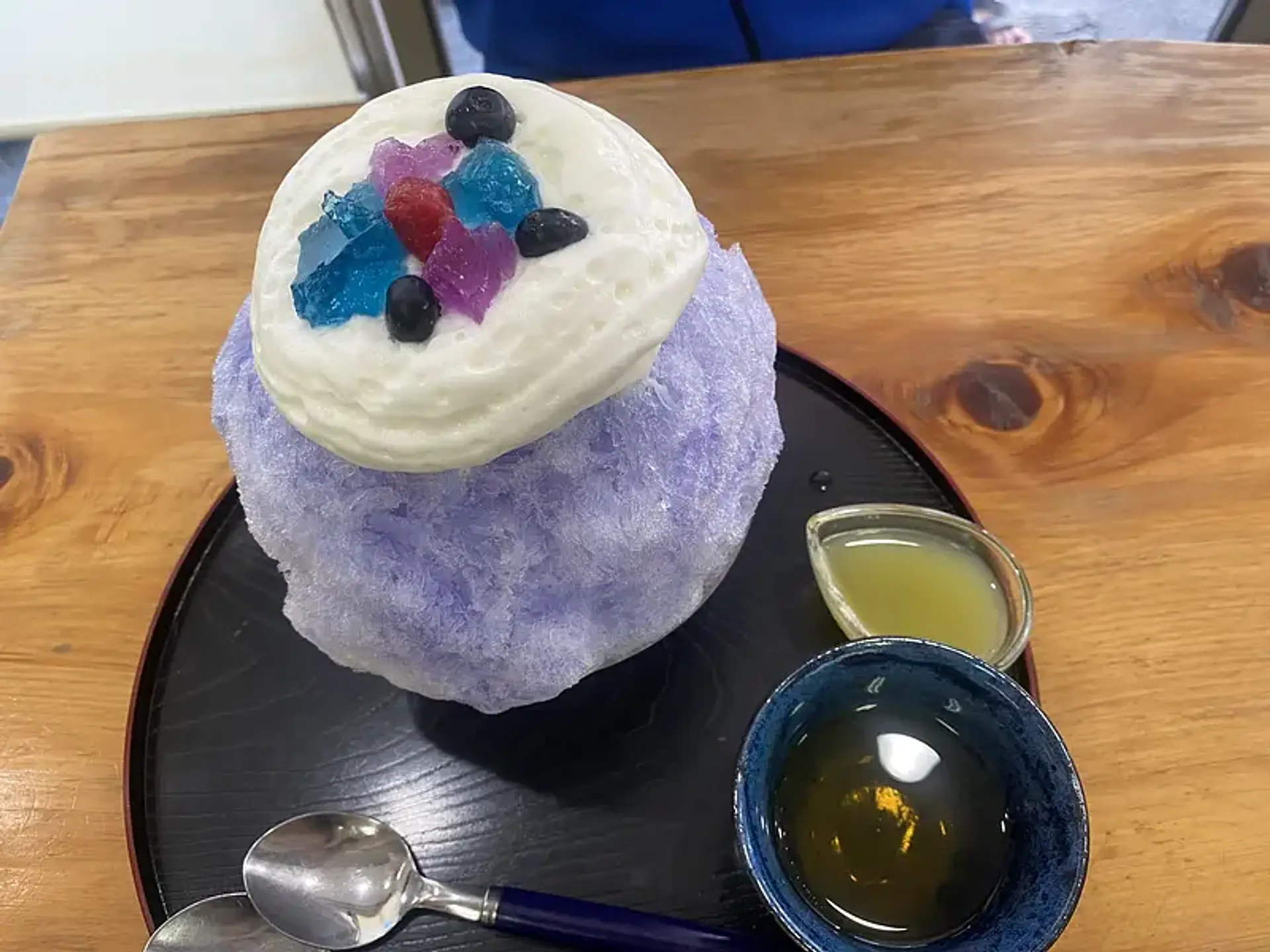 この時期人気なのは新鮮な桃を使ったかき氷。エスプーマと桃の組み合わせが最高!かき氷と言うより桃のスイーツでした。バタフライピーで色付けした「あじさいスペシャル」はゼリーも色鮮やかでSNS映え間違いなし!