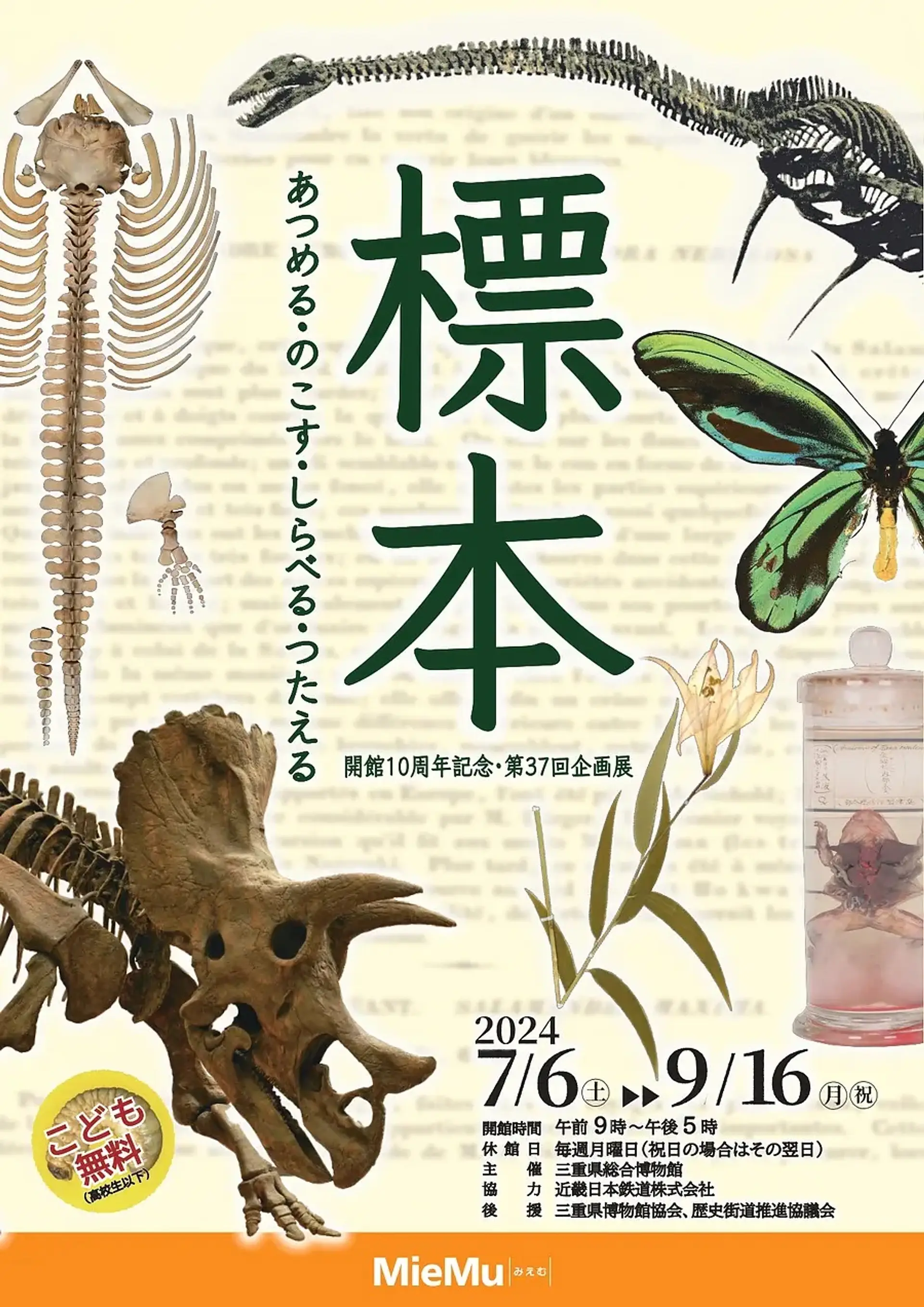 開館10周年記念を迎えた三重県総合博物館(MieMu)では、夏休みシーズンに合わせて、開館10周年記念・第37回企画展「標本(あつめる・のこす・しらべる・つたえる)」を開催しています。
