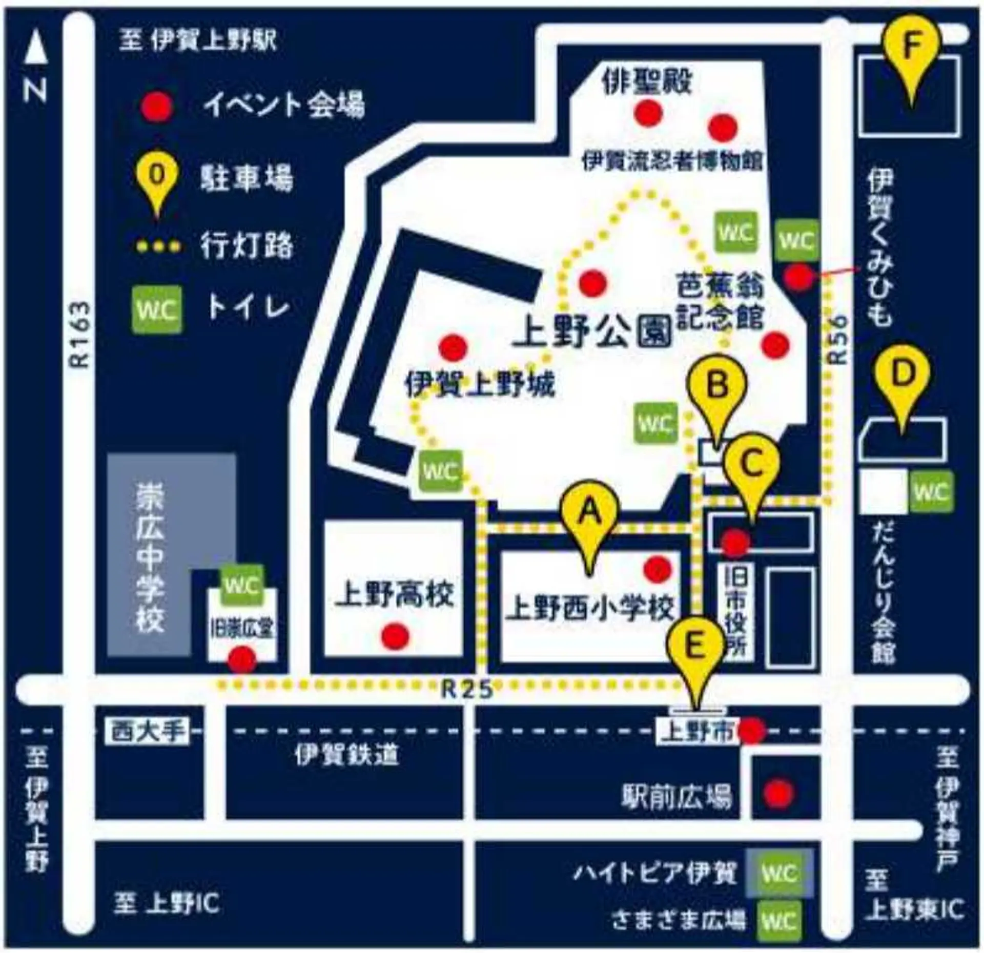 A:上野西小学校臨時駐車場〈17時以降利用可能(無料)〉