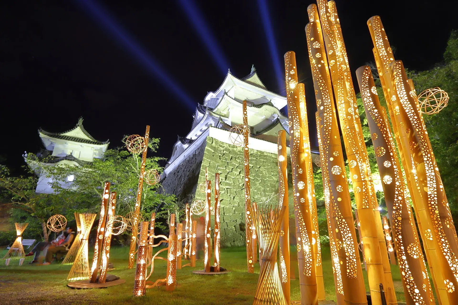 本丸広場の竹灯りは、8/10(土)・11(日)だけでなく、8/8(木)・9(金)にも点灯があり、予定時間はいずれも18:30~(雨天中止)とのことです。