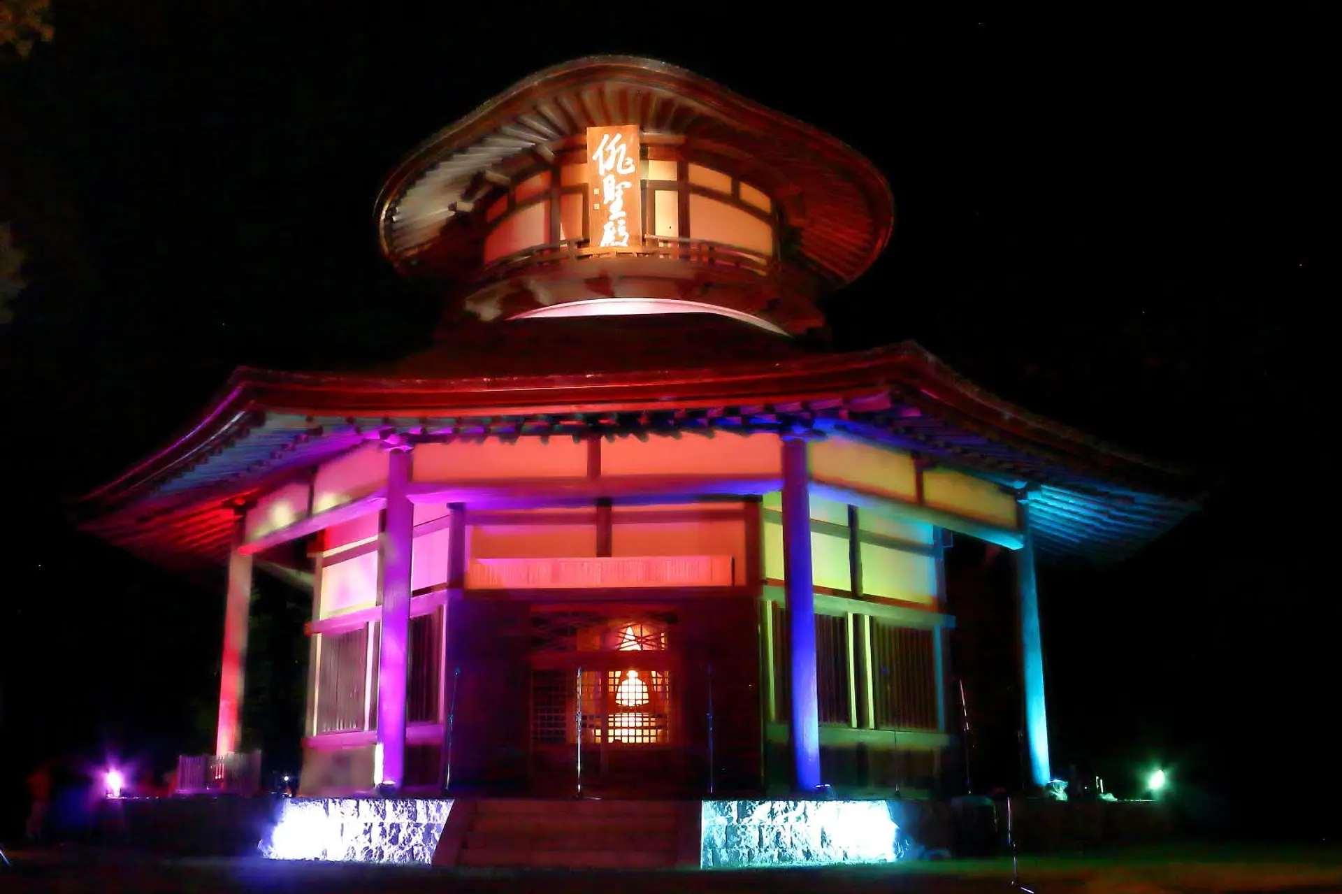 素敵なライブとともに、俳聖殿が赤,青,緑など様々な色でライトアップされます!